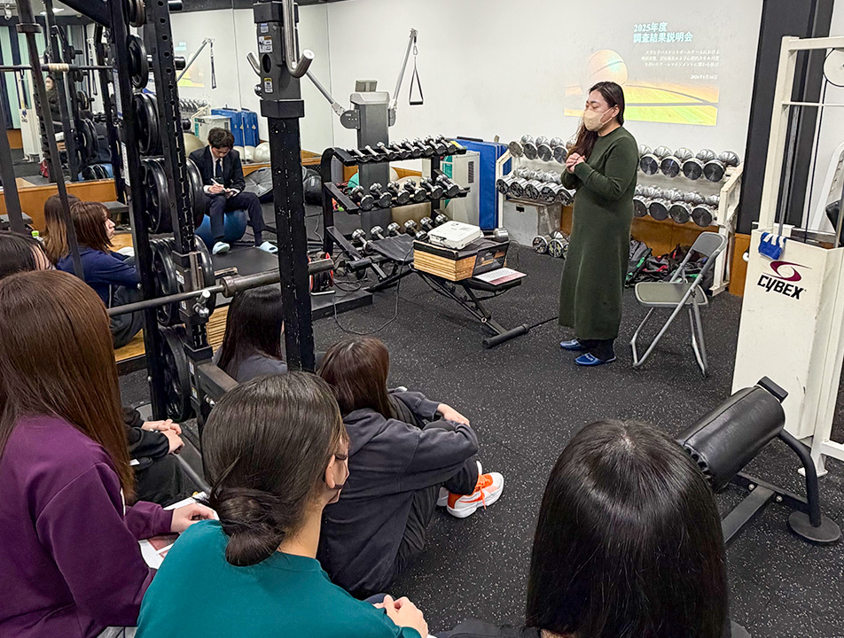1月16日に行った説明会では、スポーツに必要な認知機能や、それらに及ぼす睡眠の影響について解説。これらの要因が心理的な競技パフォーマンスにも影響を与えることが示され、女子バスケットボール部の指導者および部員は資料を手にメモを取りながら、熱心に耳を傾けていた。