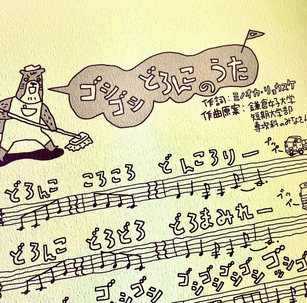 本書の巻末には、2025年11月に開講された講義内で、ミノオカさんと短期大学部専攻科が協働して制作した、おそうじが楽しくなる歌「ゴシゴシどろんこのうた」の楽譜(作詞:ミノオカ・リョウスケ、作曲原案: 短期大学部専攻科)が掲載されています。ミノオカさんによって、素敵な音楽やダンスがついたアニメーションに進化し、出版社公式YouTubeでも公開されています。