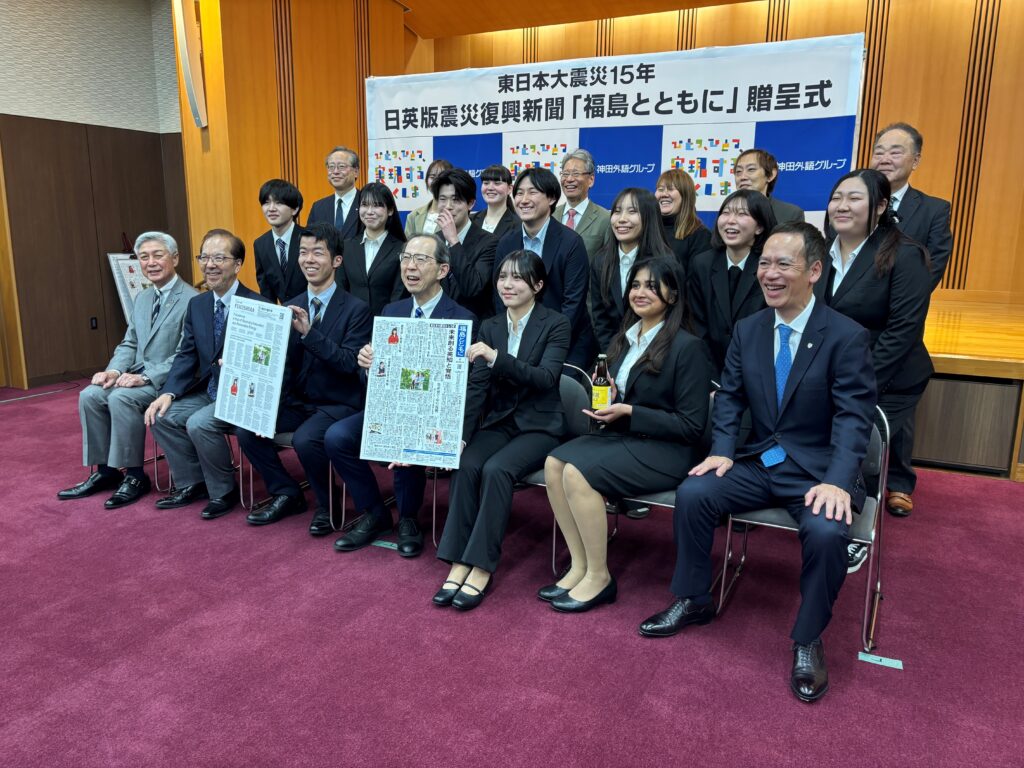 また、本プロジェクトの節目として、2026年1月26日(月)に福島県知事・内堀雅雄氏へ新聞をお渡しし、同プロジェクトの成果物の一つとして制作した震災復興ビールも贈呈しました。