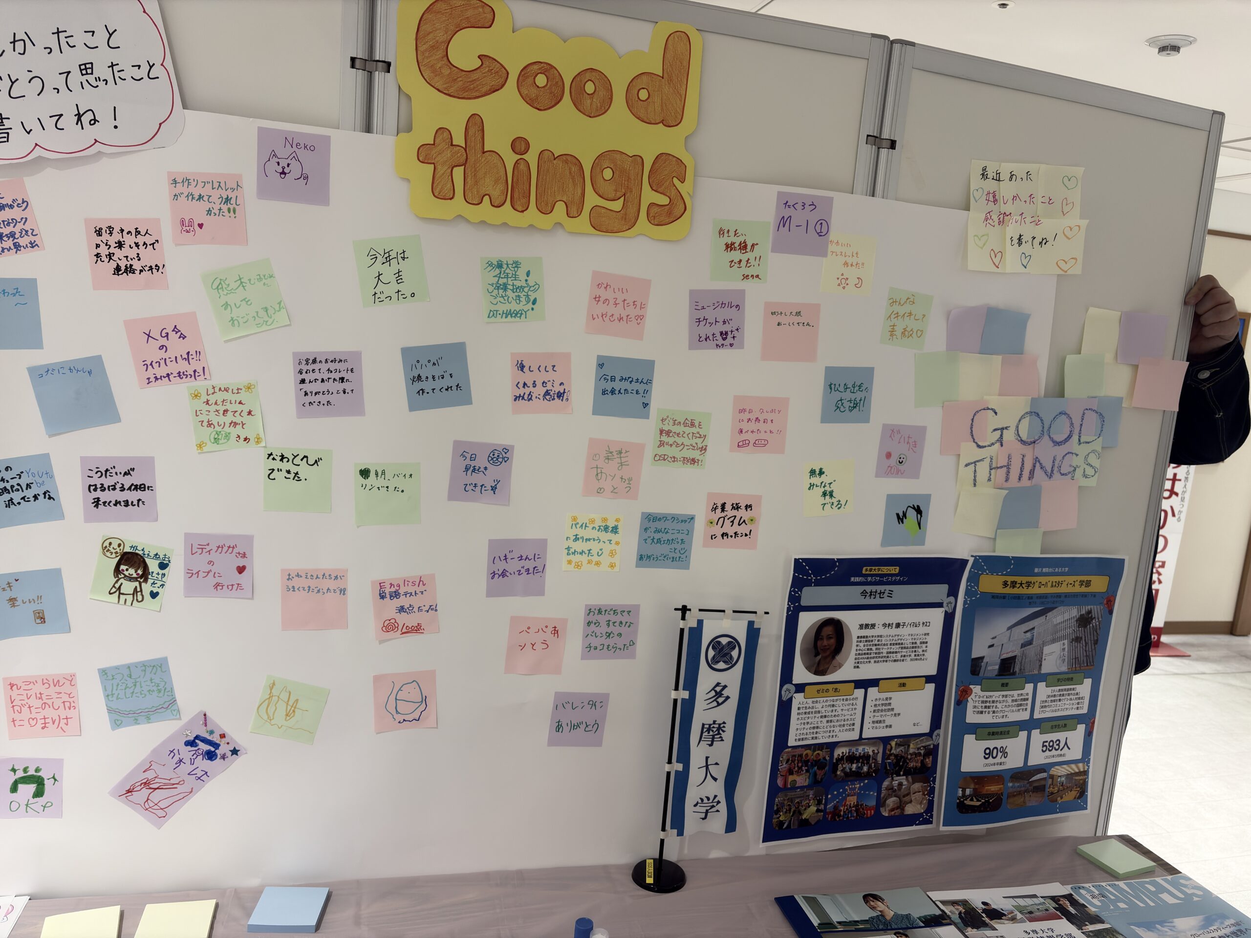 ・Good Thingsボード:日々のうれしい出来事や感謝をカードに記して掲示。ポジティブ心理学に基づいたゼミのワークを地域向けに実施。