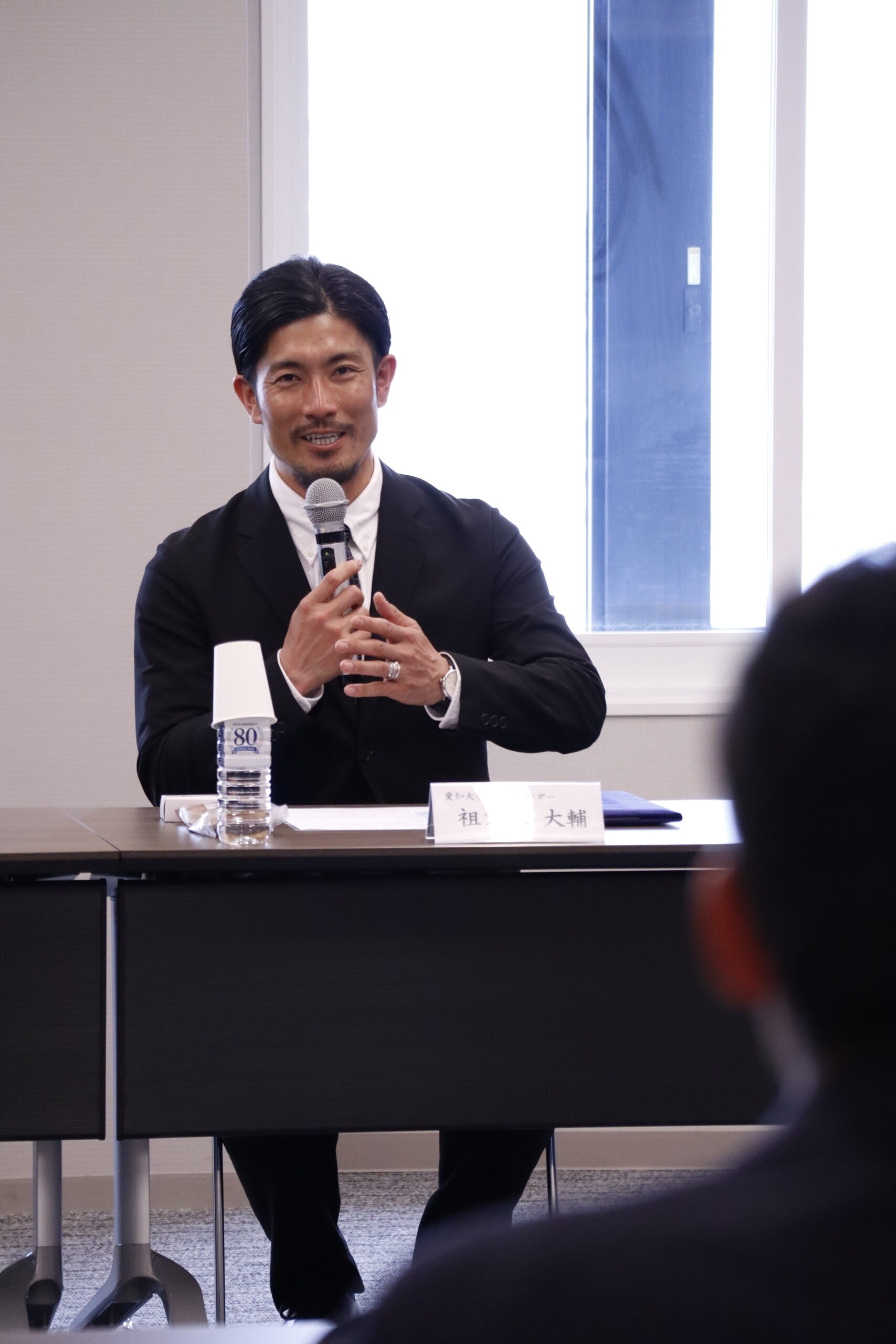 元中日ドラゴンズ投手で本学経済学部卒業生の祖父江大輔氏を、大学として初めて「愛知大学アンバサダー」に任命し、3月6日(金)名古屋キャンパスにて就任式及び記者会見を開催しました。