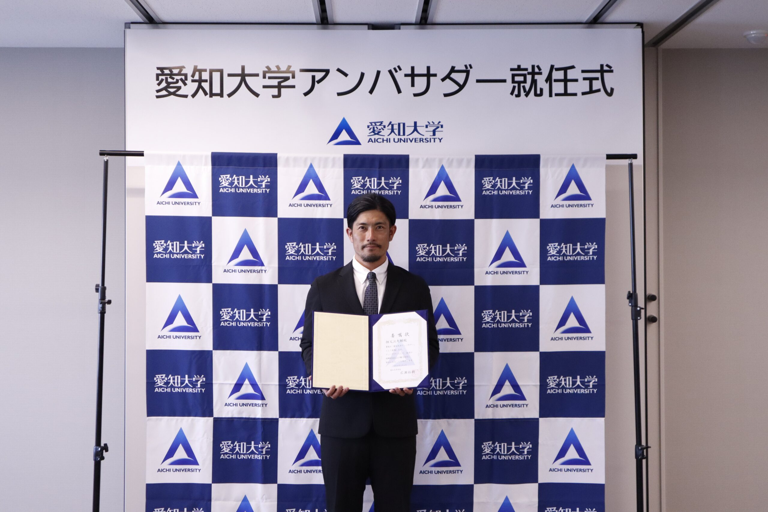 愛知大学(愛知県名古屋市、学長 広瀬 裕樹)は、元中日ドラゴンズの祖父江大輔氏に対し、本学初となる「愛知大学アンバサダー」を委嘱いたしました。