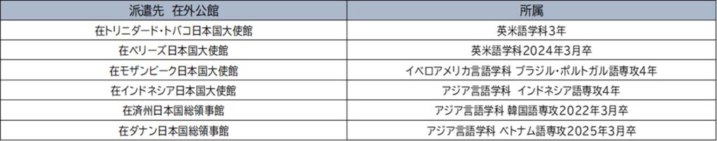 第103回外務省在外公館派遣員試験合格者 派遣先