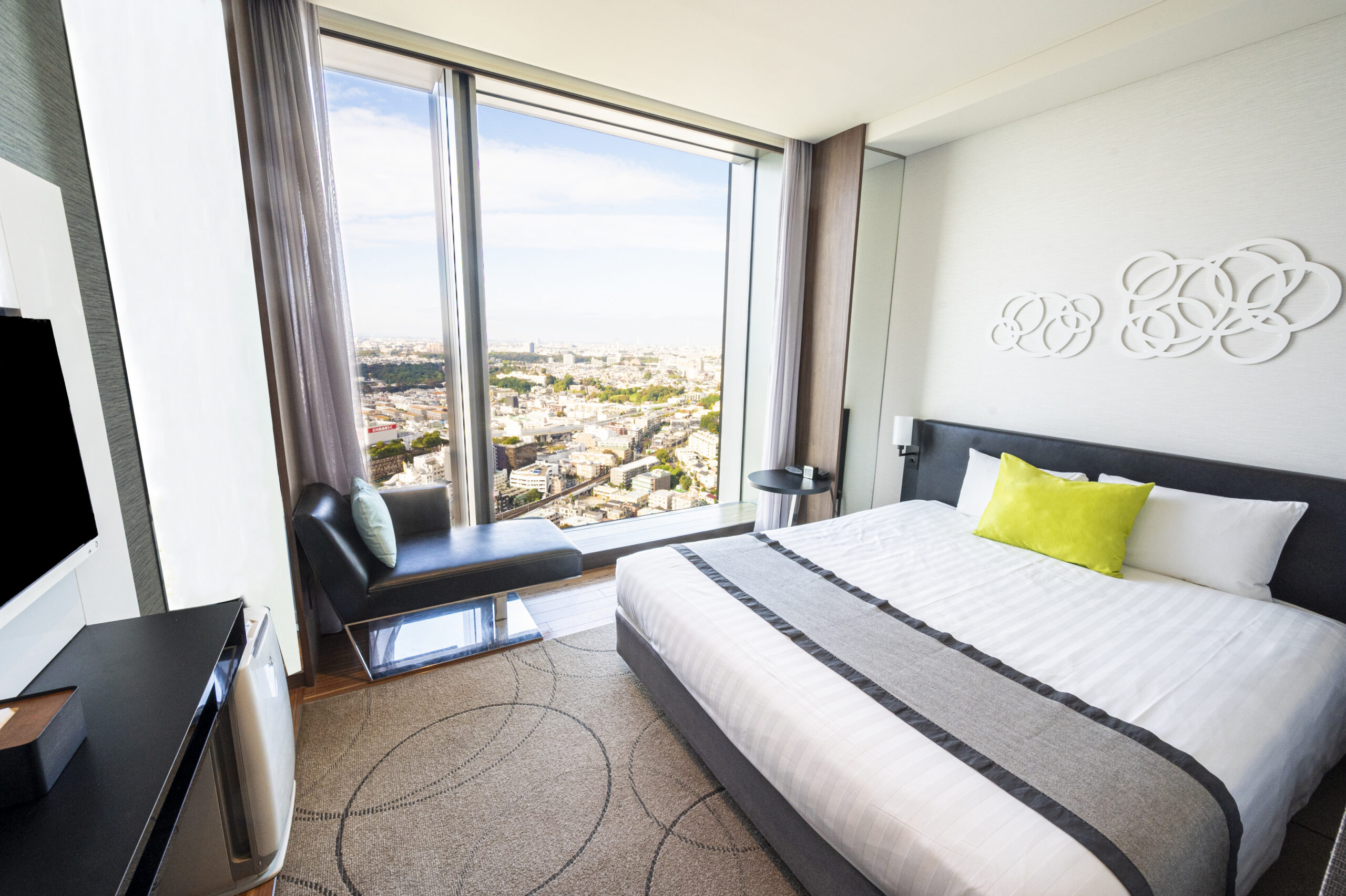 二子玉川ライズタワーオフィスの28階から30階がホテル専用フロアとなり「シティビュールーム」「リバービュールーム」では足元から広がる大窓より関東平野を眼下に見下ろすことができます。明るく開放的な空間のなか都会とは思えない贅沢な時間をお過ごしいただけます。
