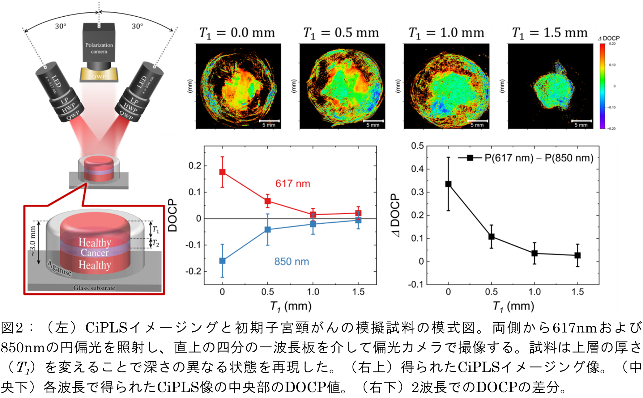 - 独自の円偏光散乱法(CiPLS法)に基づく円偏光イメージングにより正常上皮の下に隠れた腫瘍細胞の“深さ”を光学的に計測できることを実証した。