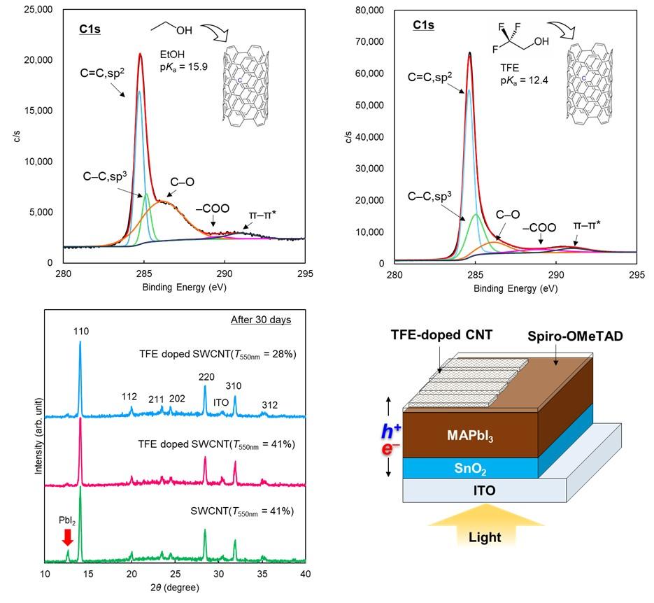 論文タイトル:Facile Doping of 2,2,2-Trifluoroethanol to Single-walled Carbon Nanotubes Electrodes for Durable Perovskite Solar Cells