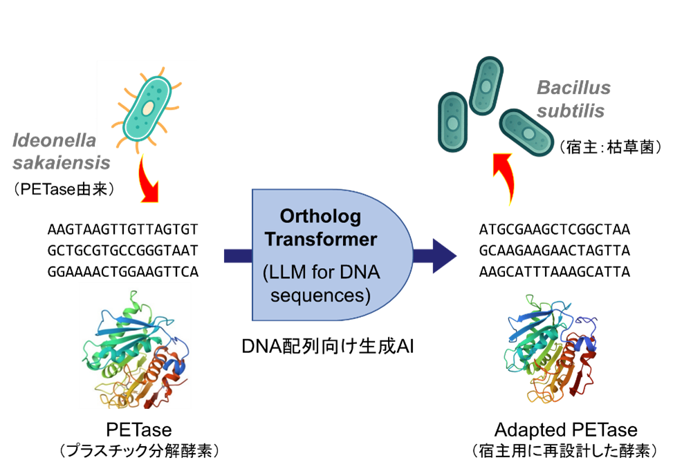 DNA言語に対する生成AI基盤モデルを開発 オーソログ進化パターンに基づく遺伝子配列再設計で異種生物での高発現を可能に ~バクテリアのプラスチック分解能力を最大約10倍向上~(北里大学)