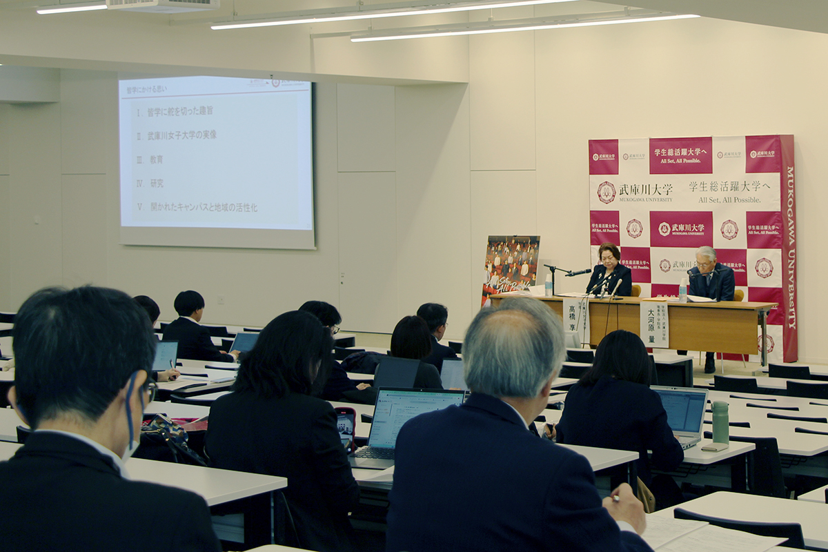 「女子大らしからぬ大規模女子総合大学」である武庫川女子大学の優れた実績を示し、「施設面でも教育面でも共学に足る環境が整っている」としたうえで、「女子大学では十分に展開できなかったことに新たにチャレンジし、これからの社会の発展に寄与できれば」と語った。
