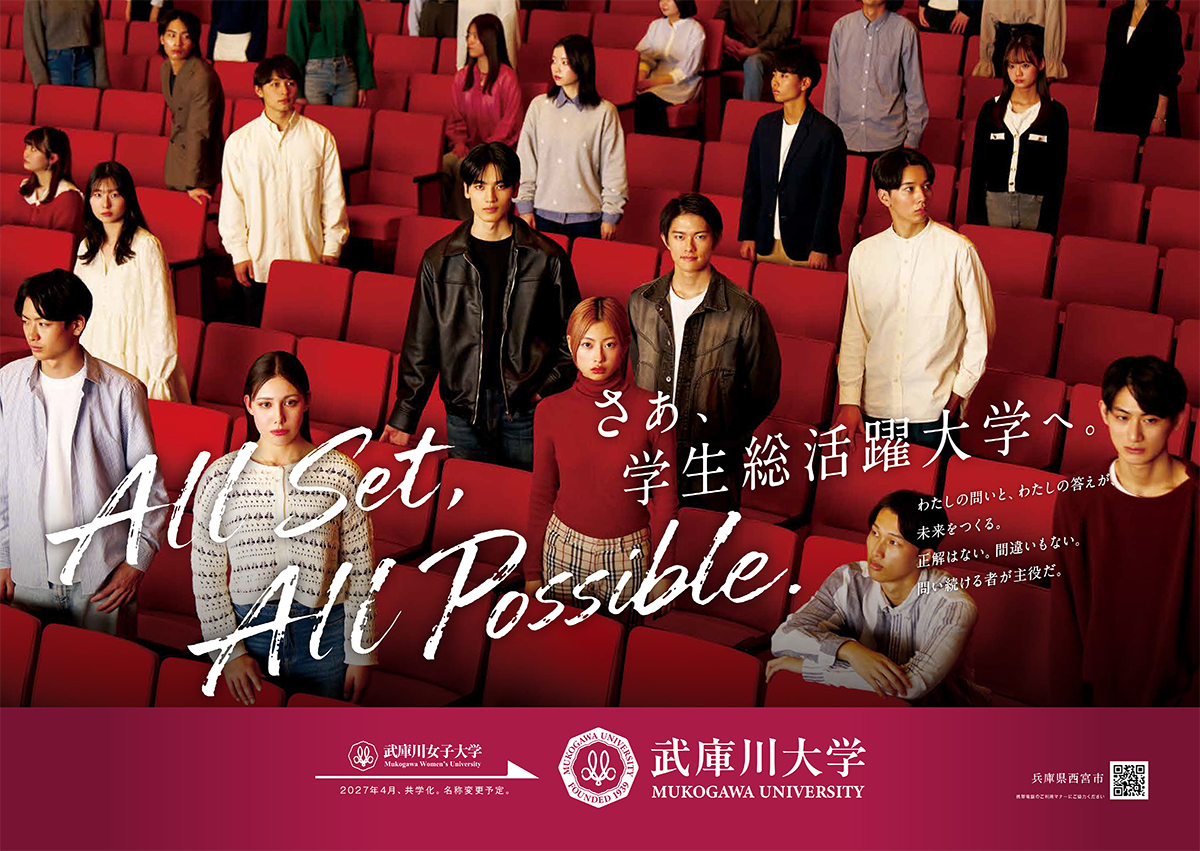 会見では、武庫川大学の目指す姿や特色を表すタグライン「学生総活躍大学へ All Set, All Possible.」や、従来の記章を八角形で囲み、大学名と組み合わせた「コミュニケーションマーク」を公表。併せて、在学生50人と男性モデルなどが登場するキービジュアルや、ブランドムービー2種も発表した。