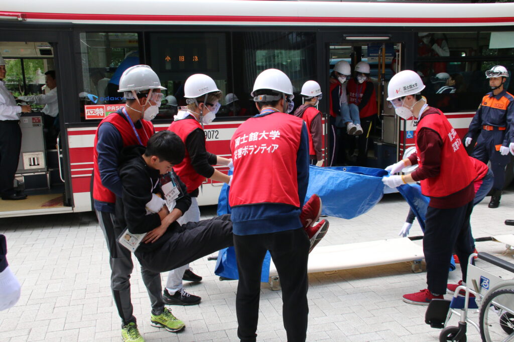学園全体での防災訓練のほか、 周辺の自治体や住民とともに合同訓練を実施