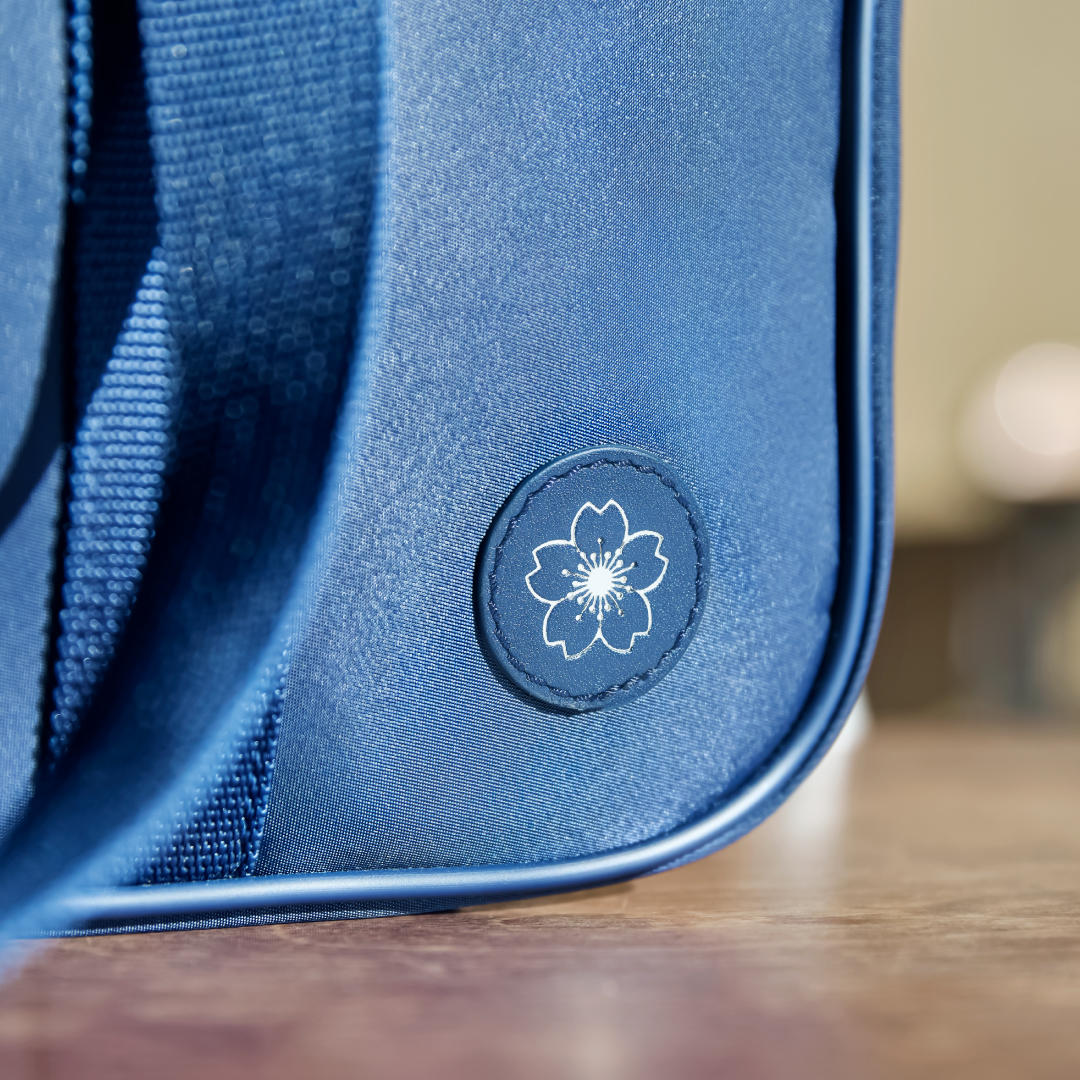 このほかに、付属のショルダーベルトを付けると斜めがけができる/重量を軽くするため金具の使用は最小限に/レザーに銀箔押しで校章の桜を上品に刻印するなど、細部にもこだわりました。このスクールバッグは2025年度に入学する中学生全員と、希望する在校生に販売予定です。
