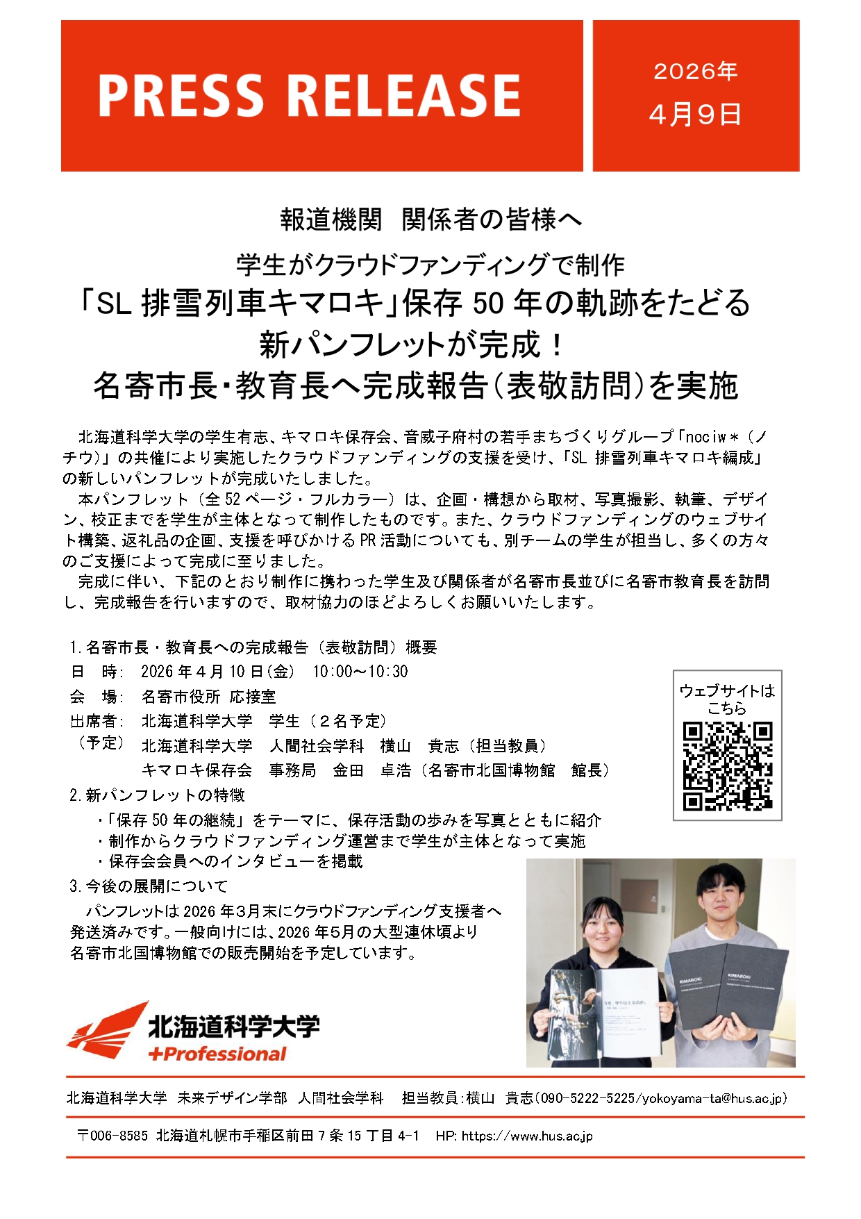 2026年4月10日(金)、学生がクラウドファンディングで制作「SL排雪列車キマロキ」保存50年の軌跡をたどる新パンフレットが完成!名寄市長・教育長へ完成報告(表敬訪問)を実施