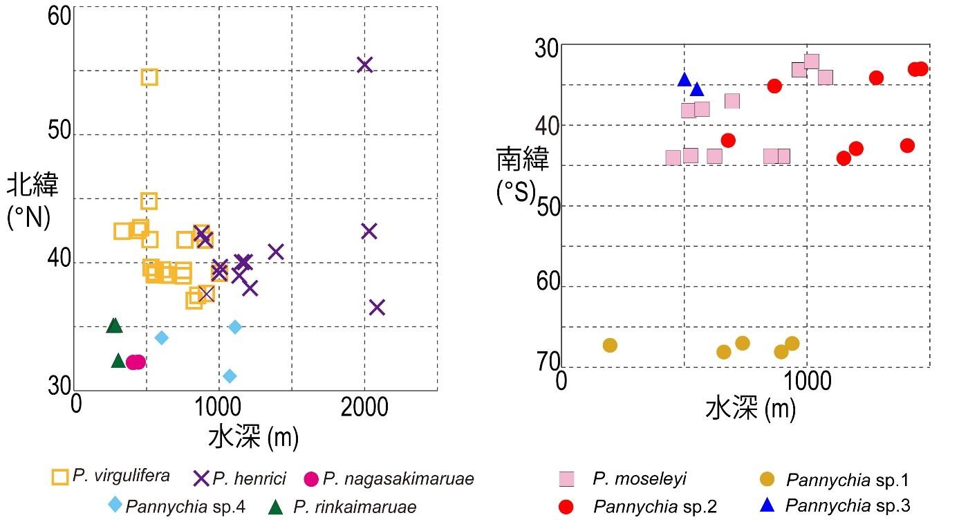 今回識別されたハゲナマコ属の10種は、2種がそれぞれ東太平洋と南極海太平洋区に孤立した分布域をもつ一方、北西太平洋では5種が、南西太平洋では3種がそれぞれ互いに重なり合う分布域をもちました。そのことから、形態的特徴が似た複数種が互いに重なり合う分布域をもつことで種境界の見落としに繋がり、種多様性の過小評価と単一種が太平洋全域に分布するという誤った認識を引き起こしていたと考えられました。