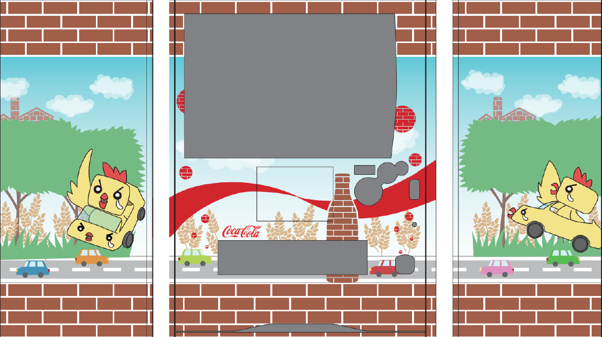野幌公民館の自販機をデザインしたCチームは、利用者のうち主に中高生世代を対象としたラッピングを提案。「江別と活きる」をコンセプトに、未来都市へ誘導するようなデザインやレンガとブリキ看板を組み合わせた案を提案し、白と黒を基調に小麦や木々などをシンプルに表現したものに決定した。