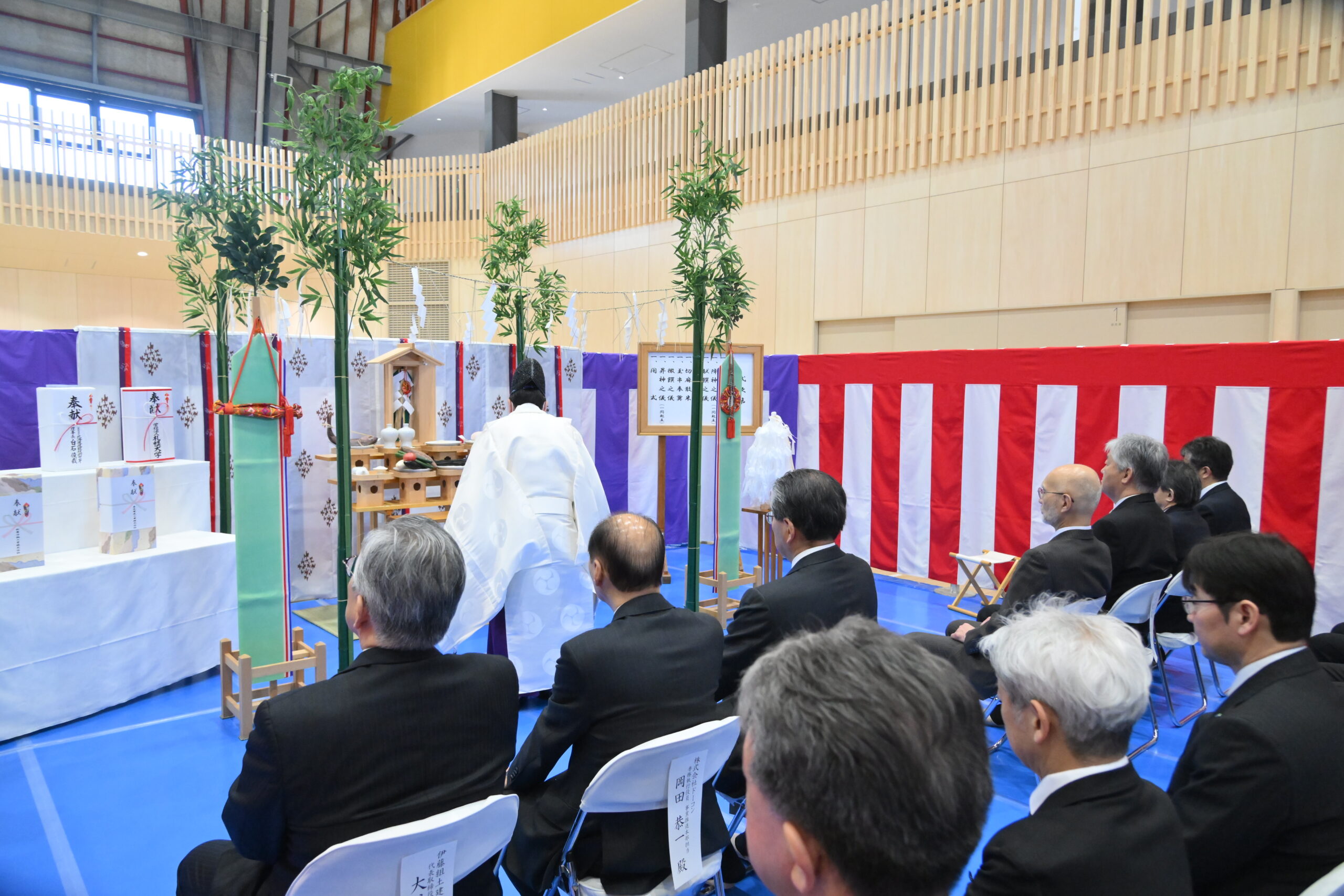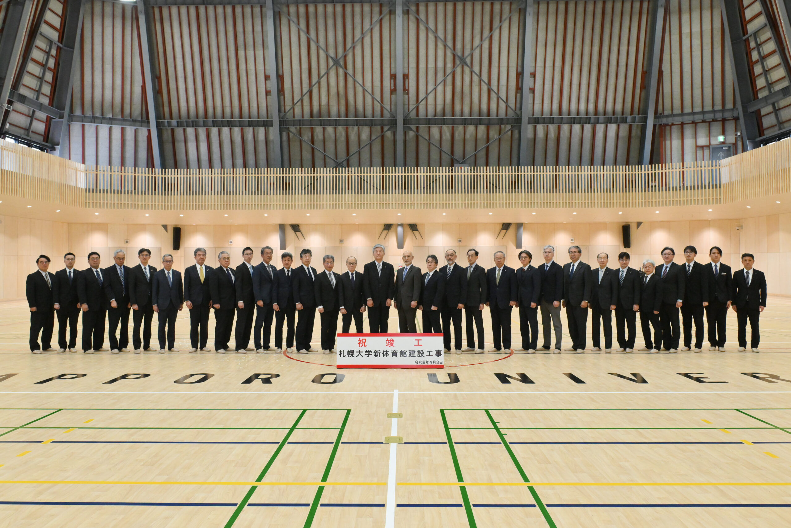 札幌大学(札幌市豊平区)では、2026年3月に「新体育館」が完成。4月3日に竣工式が執り行われた。当日は、学校法人札幌大学の倉本博史理事長、札幌大学の大森義行学長をはじめとする大学関係者に加え、施工を担当した伊藤組土建株式会社(札幌市中央区)、設計・監理を担当した株式会社ドーコン(札幌市厚別区)の関係者が出席し、西岡八幡宮の神職による神事が厳かに行われた。新体育館は地下1階・地上2階建てで、各種大会や練習に対応できる環境が整備されているほか、バリアフリーにも配慮。授業や課外活動での活用に加え、地域との交流やスポーツ振興の拠点としても期待される。