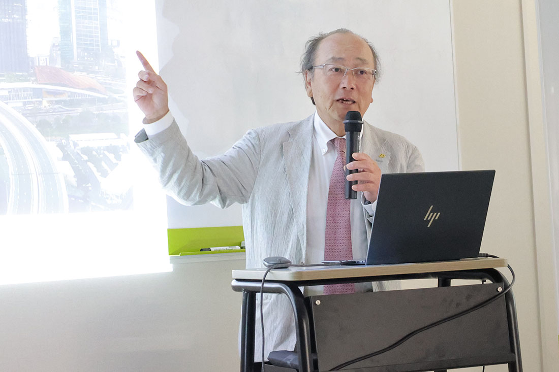 4月14日には本学熱海セミナーハウスにて開会式ならびにオリエンテーションが行われました。在タイ王国日本大使館一等書記官 谷村隆昌 氏、タイ政府デジタル経済推進庁・ODOS日本国責任者Dr. Kitti Koonsanit 氏、本学副学長・工学部長 苅谷 義治が挨拶を行ったほか、本プログラムの説明や「デザイン&テクノロジー」に関する特別講演が行われました。