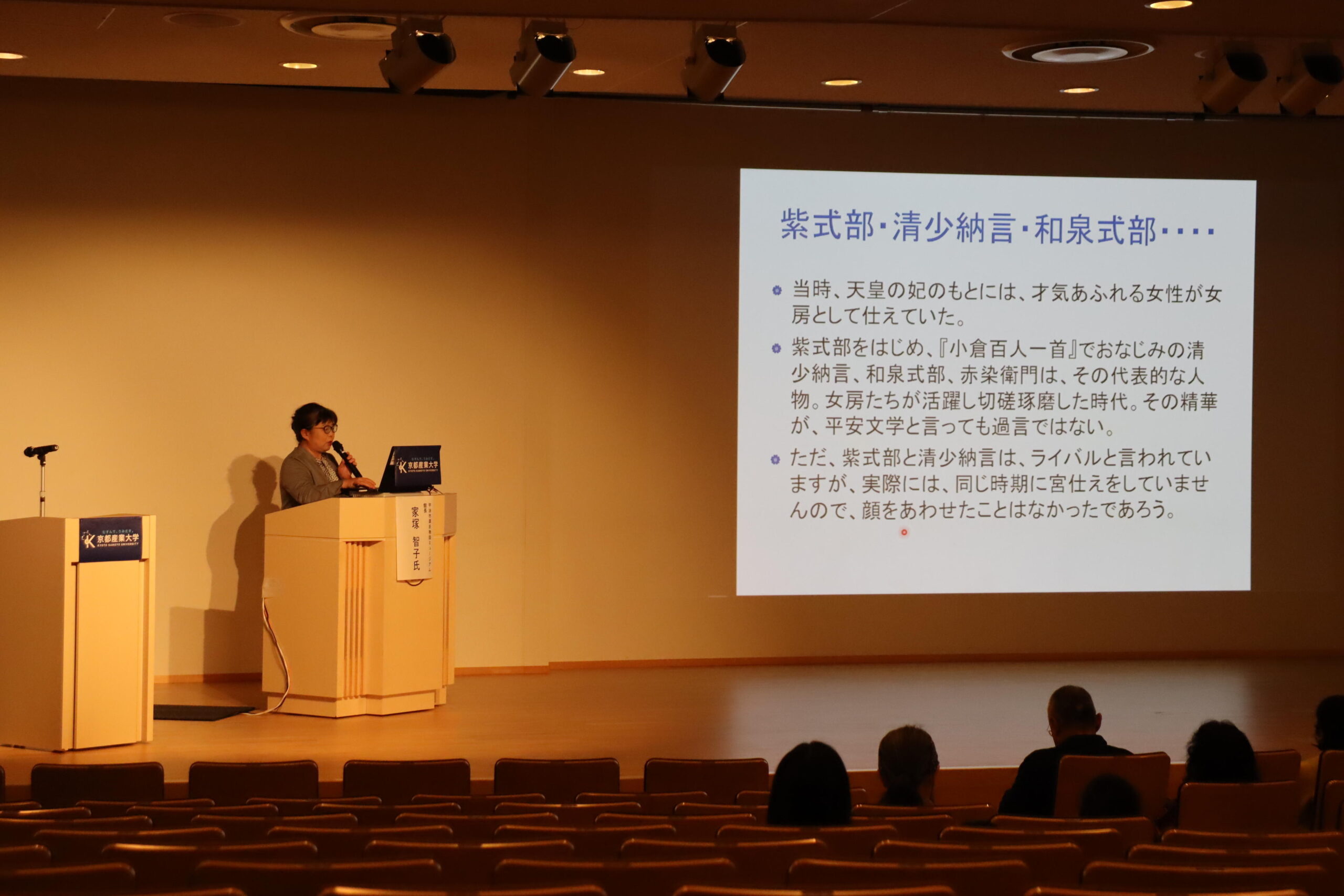 また雲岡 梓氏(京都産業大学文化学部准教授)による講演会では、江戸時代に源氏物語がどのように庶民へと広まったのかを解説。参加者からは「現代語訳の比較が興味深かった。須磨帰りを乗り越えて読み進めたい。」、「古典文学は必要なものだと実感した。」などの感想が寄せられました。