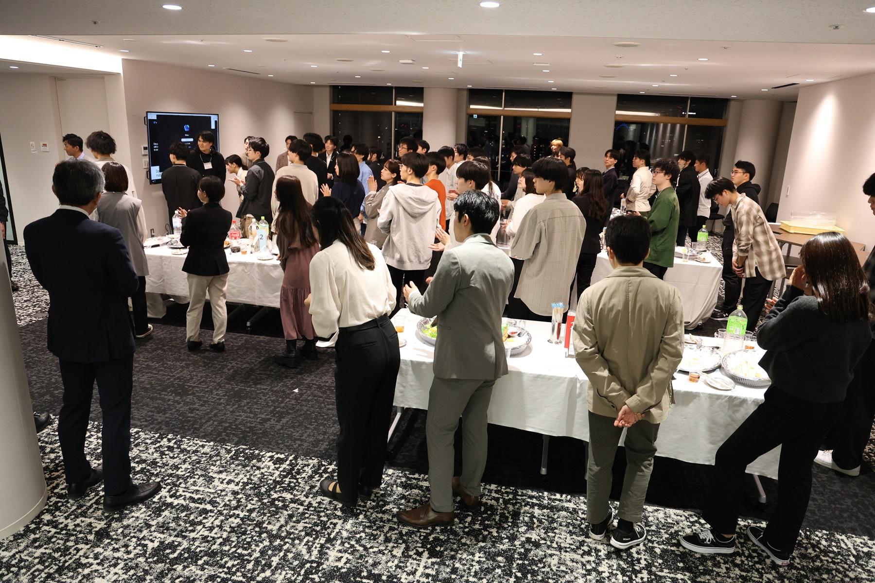 コンテスト終了後には3大学合同の交流会を実施し、普段は出会う機会の少ない他大学の学生や教員、マイナビの事務局と懇親を深めイベントは終了しました。