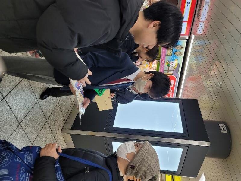 ・内 容: 戸塚区内の市立中学校に通う生徒を対象とした警察官の職業体験の一環として、学生が生徒に特殊詐欺に関する講義を行うとともに、生徒と協力してJR戸塚駅改札前にて特殊詐欺撲滅を呼びかけるチラシ配布