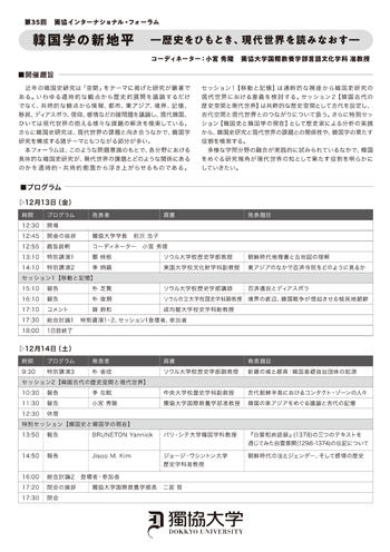 テーマ :「韓国学の新地平―歴史をひもとき、現代世界を読みなおす―」