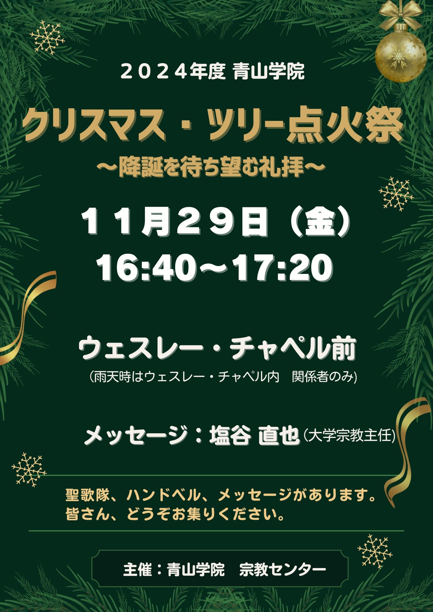 <2024年度 青山学院クリスマス・ツリー点火祭~降誕を待ち望む礼拝~>