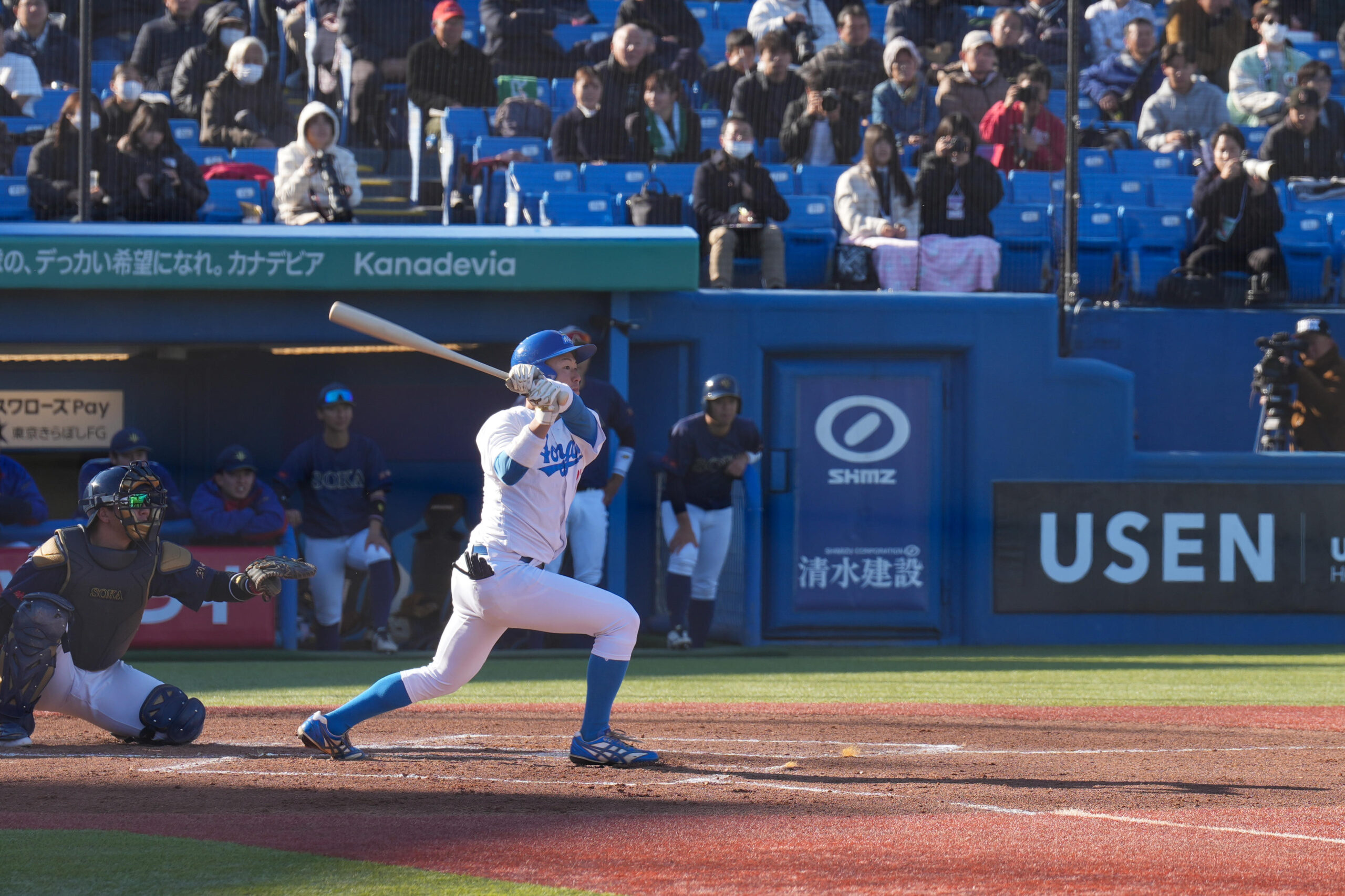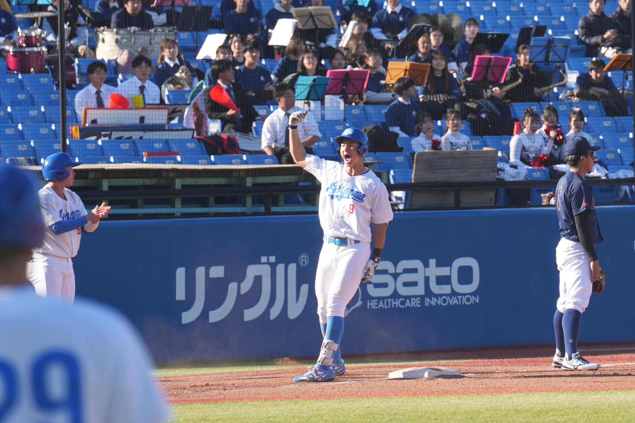 2024年11月25日(月)、同大初の大学4冠がかかった「第55回記念明治神宮野球大会 大学の部」の決勝戦が行われました。同大硬式野球部は、昨年も東都大学野球春季・秋季リーグ戦、全日本大学野球選手権大会を制して明治神宮野球大会に臨みましたが、決勝で敗れ、惜しくも大学4冠にあと一歩届きませんでした。「プロ野球ドラフト会議2024」でともに1位指名を受けた主将の佐々木泰選手、西川史礁選手、さらに、二人とともにレギュラーシーズンのクリーンナップである小田康一郎選手を怪我で欠き、スターティングメンバーに4年生が不在の中で今大会の決勝戦を迎えましたが、チーム一丸となって、明治神宮大会初優勝を果たしました。また、東都大学野球春季・秋季リーグ戦、全日本大学野球選手権大会での優勝とあわせて、史上5校目となる悲願の大学4冠を達成しました。