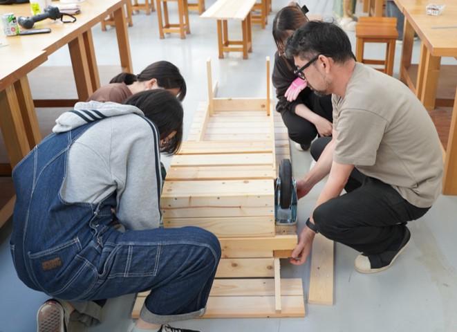 市によると相模大野駅に通じるコリドー街の歩行者数は、旧伊勢丹相模原店の撤退やコロナ禍の影響で、2013年の約3万人をピークに2020年は約1万人と、7年間で1/3まで減少しています。そこで、相模原市南区役所と相模女子大学が連携し、本学生活デザイン学科の学生が企画・制作したベンチなどを設置し、コリドー街を「居心地のよい空間」として演出する官学連携事業を行うことになりました。この取り組みは、生活デザイン学科の授業「建築デザインⅢ」及び「プロダクトデザインⅡ」(担当:生活デザイン学科教授・桑原茂、准教授・栁邉匡史)の共通課題として行われ、3年生及び4年生18人が参加しています。