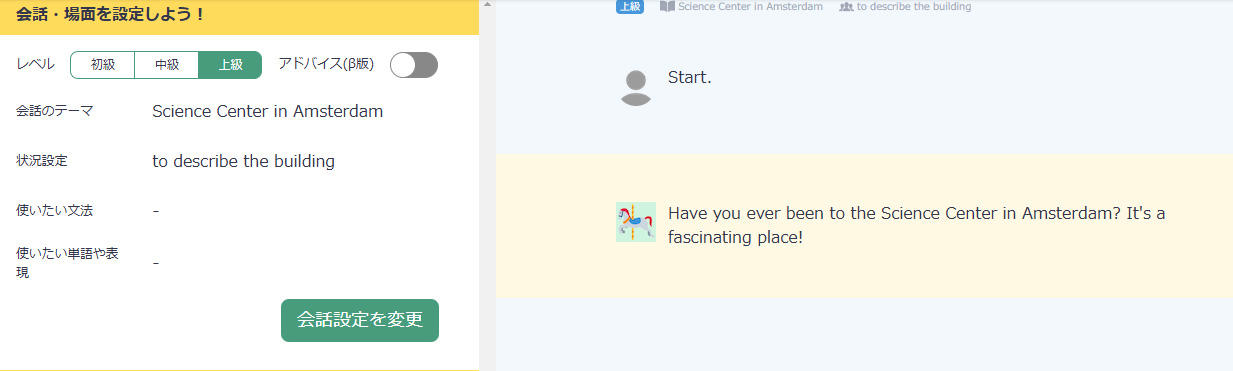 英会話の分野においては、現在ではアプリ等を導入し、実際に声に出して生成AIと英会話を行うこともできるが、適切なレベルで会話が弾むような体験をするためには、プロンプトで生成AIをカスタマイズする必要がある。