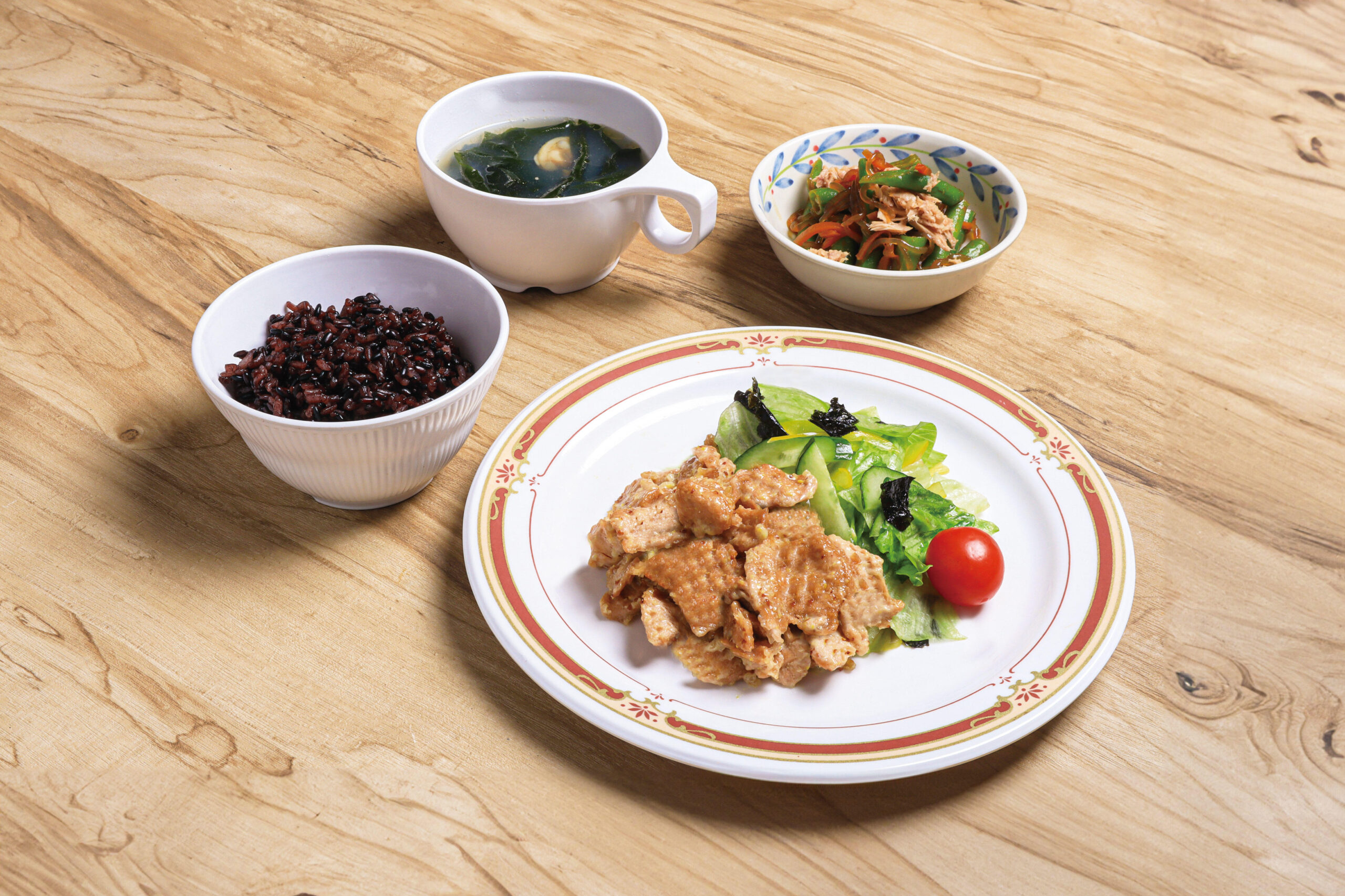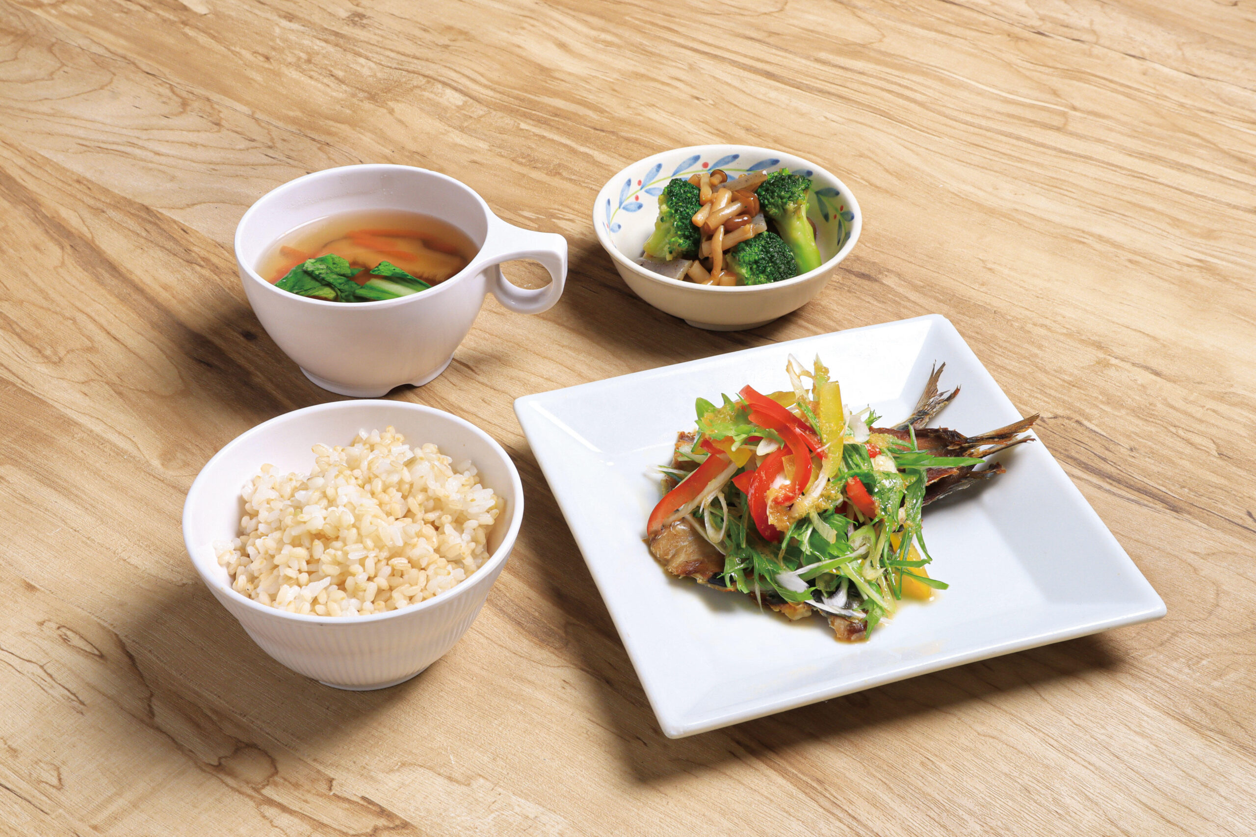 「The Japan Diet」とは、日本動脈硬化学会推奨の動脈硬化予防に役立つ健康的な食様式です。肉の脂身や動物脂を控え、大豆、魚、野菜、海藻、きのこ、果物、未精製穀類を取り合わせて食べる減塩した日本食パターンの食事です。食物学科の亀山詞子講師が、同学会の生活習慣栄養部会委員を務めているご縁もあり、今回のメニューのテーマとして選ばれました。