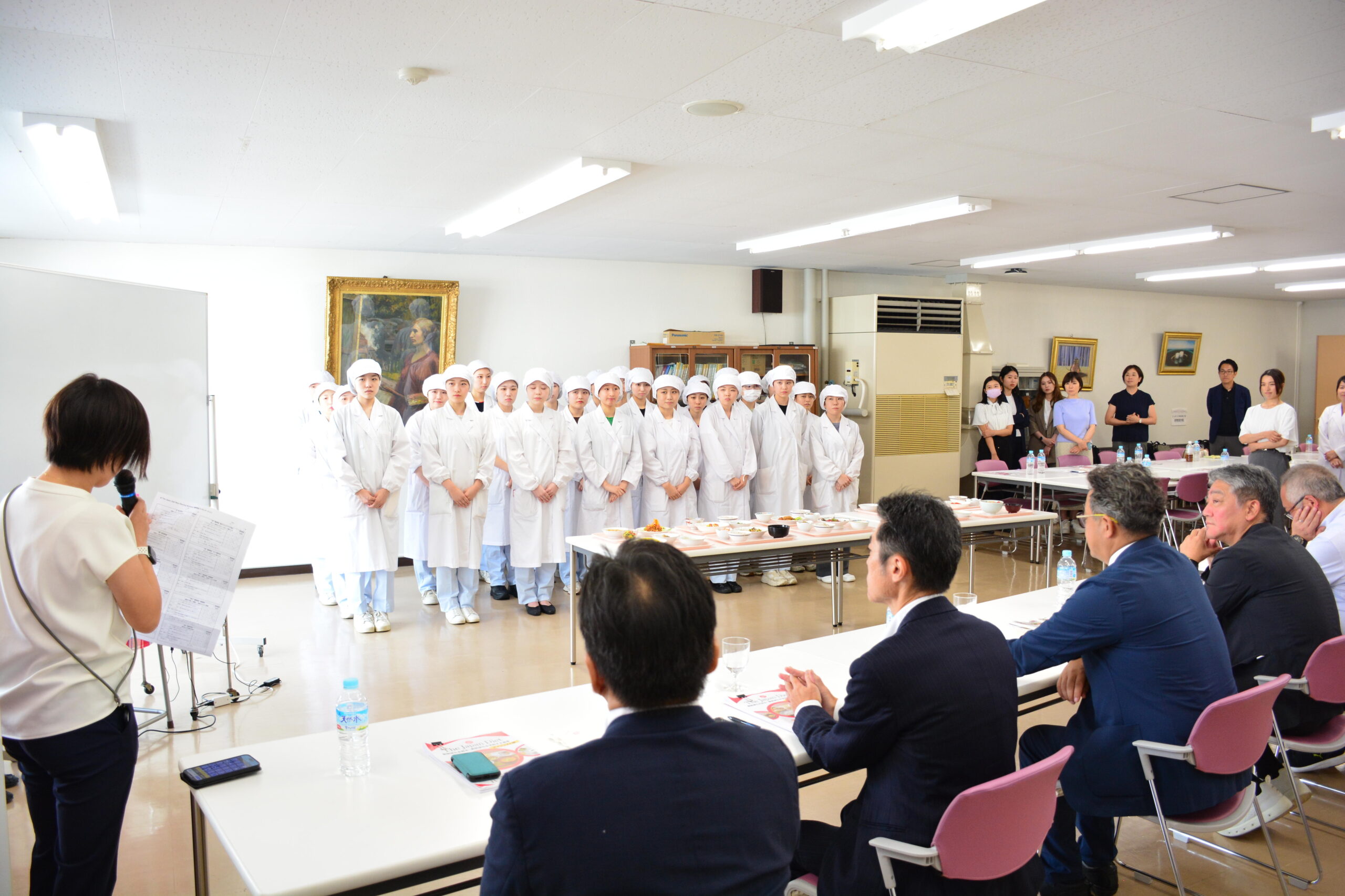 8月には、学生が考案したメニューの試作選考会が行われ、「The Japan Diet」のコンセプトに合っているか、アイデアの独創性、彩りや見た目、おいしさ、提供しやすさの5つの基準で審査されました。