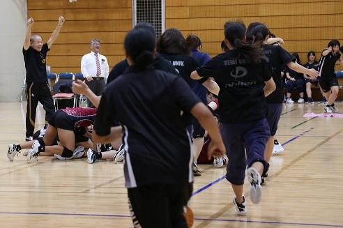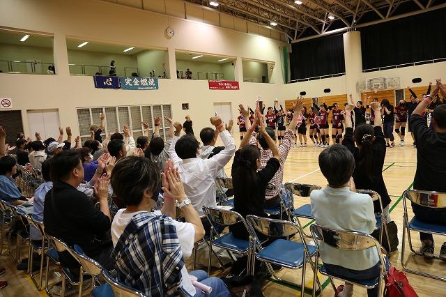 選手たちは自分を信じ、仲間を信じ、満員の応援席からの声援に後押しされながら全力を尽くして戦った。そして迎えた最終第5セットでは、先行を許しながらもデュースに持ち込み、最後は全部員のパワーを込めた一球が相手の厳しい追い上げを打ち破って勝利。その瞬間、控えのメンバーを含む全ての部員がコートの中央に駆け寄り、喜びを爆発させた。