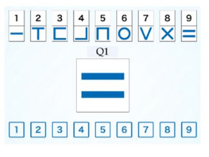 被験者はディスプレイの上部に 9 組の数字と記号が表示されます。ターゲット記号はディスプレイの中央に表示され、選択可能な数字は下部に表示されます。参加者は、パネルの中央にあるターゲット記号に対応する数字をできるだけ早く選択するように求められます。2 分以内に正解した数を記録します。(図4)