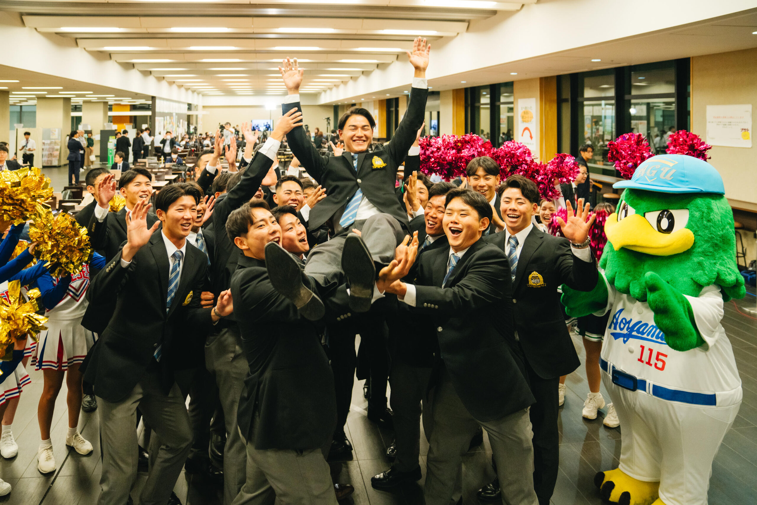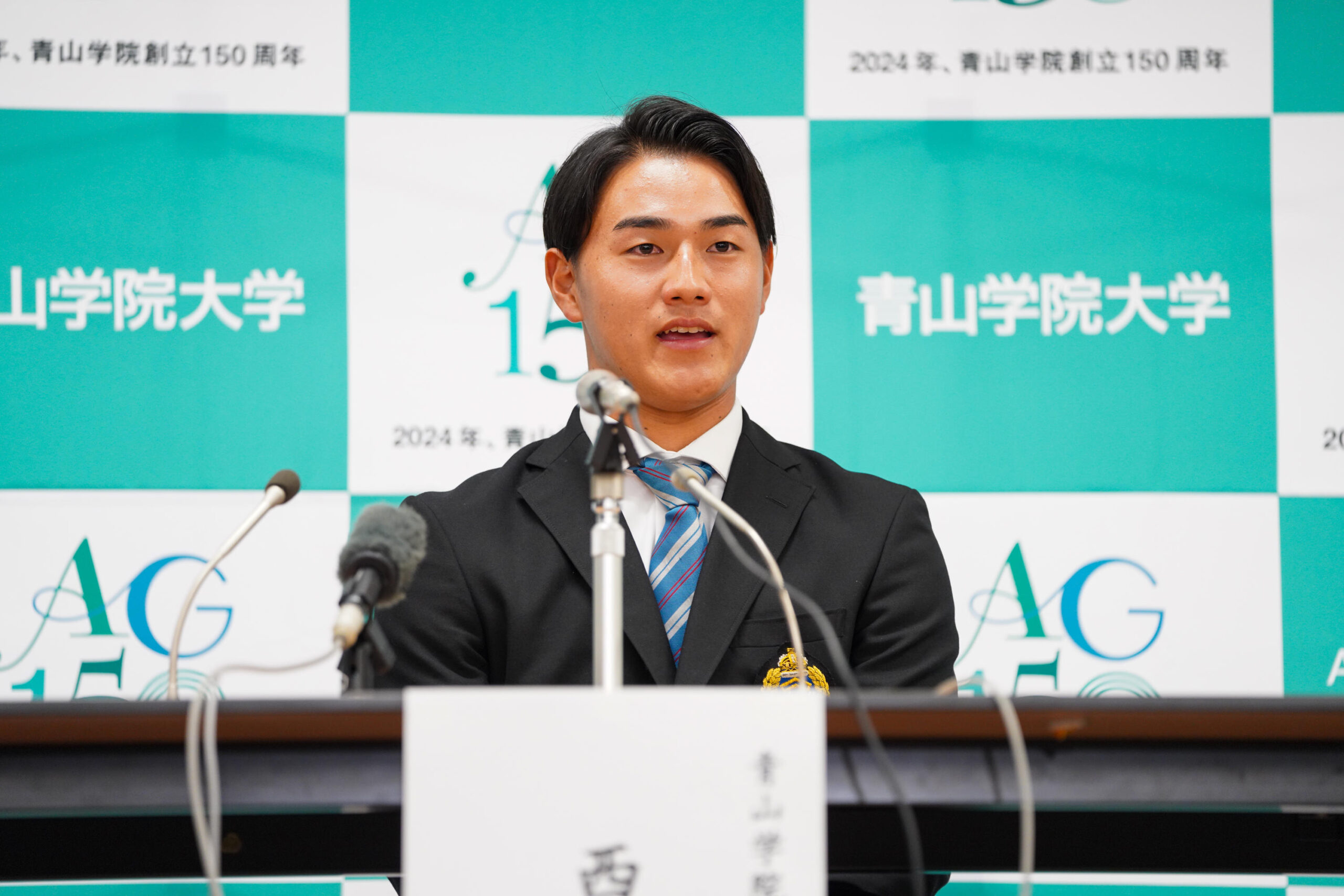 ▼【硬式野球部】2024年プロ野球ドラフト会議で主将の佐々木泰選手、西川史礁選手、本学卒業生の山中 稜真選手が指名されました(青山学院大学公式ウェブサイト)