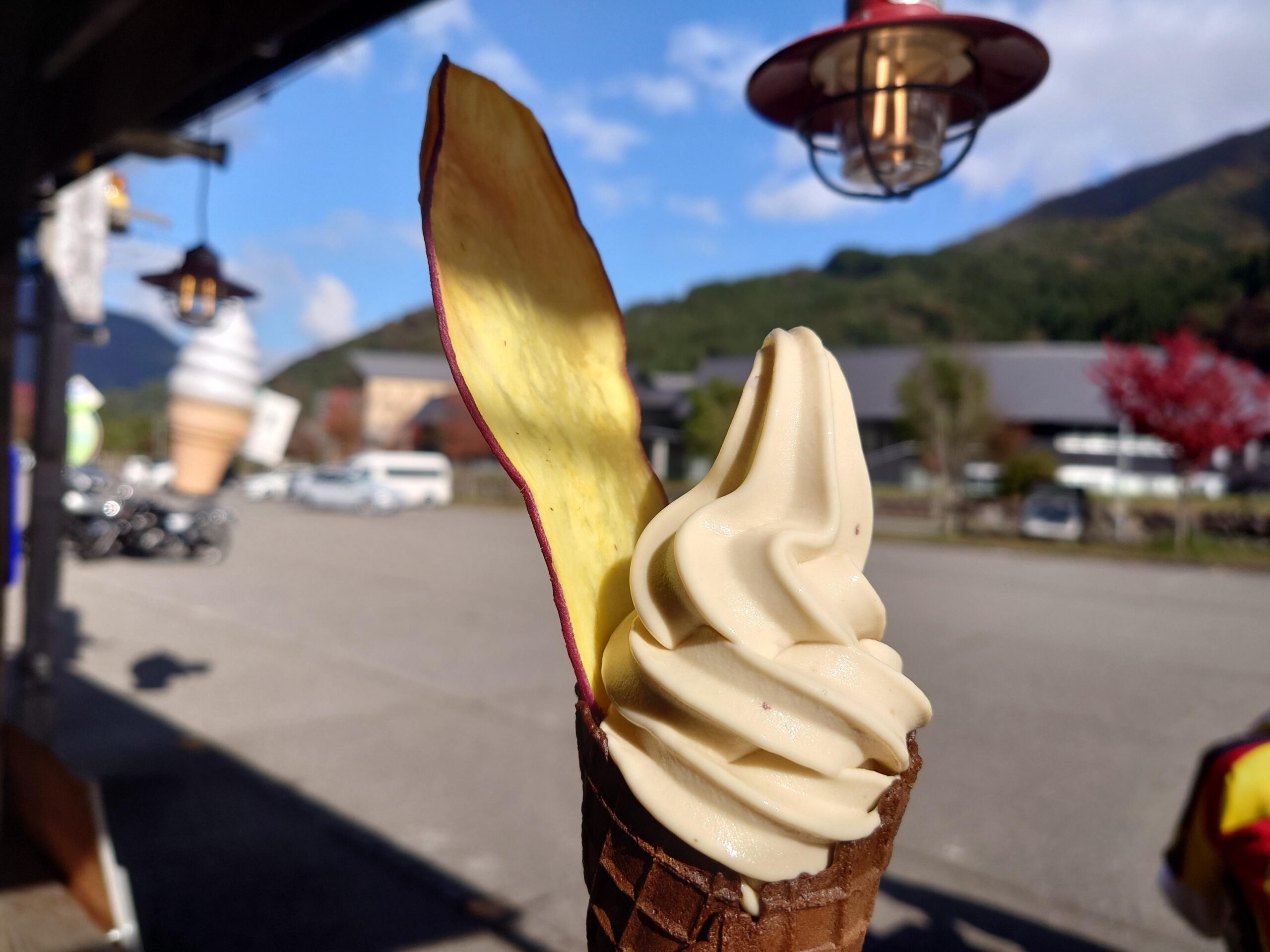 ・キジトラ研究所で発売される紅はるか入りソフト(写真はチップスべにゃソフト)