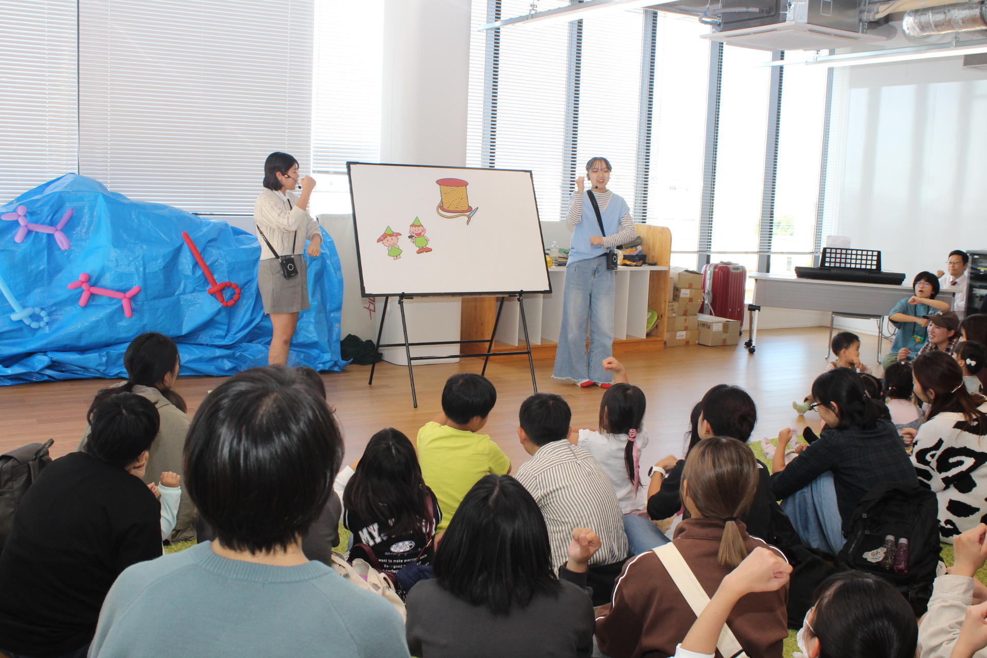 大学の学生らはクラブ・サークルによる催しやゼミ・海外体験の活動報告、飲食模擬店など、多様なイベントを実施。また短期大学では、クラスごとに子どもたちが遊べる参加型の企画を行った。