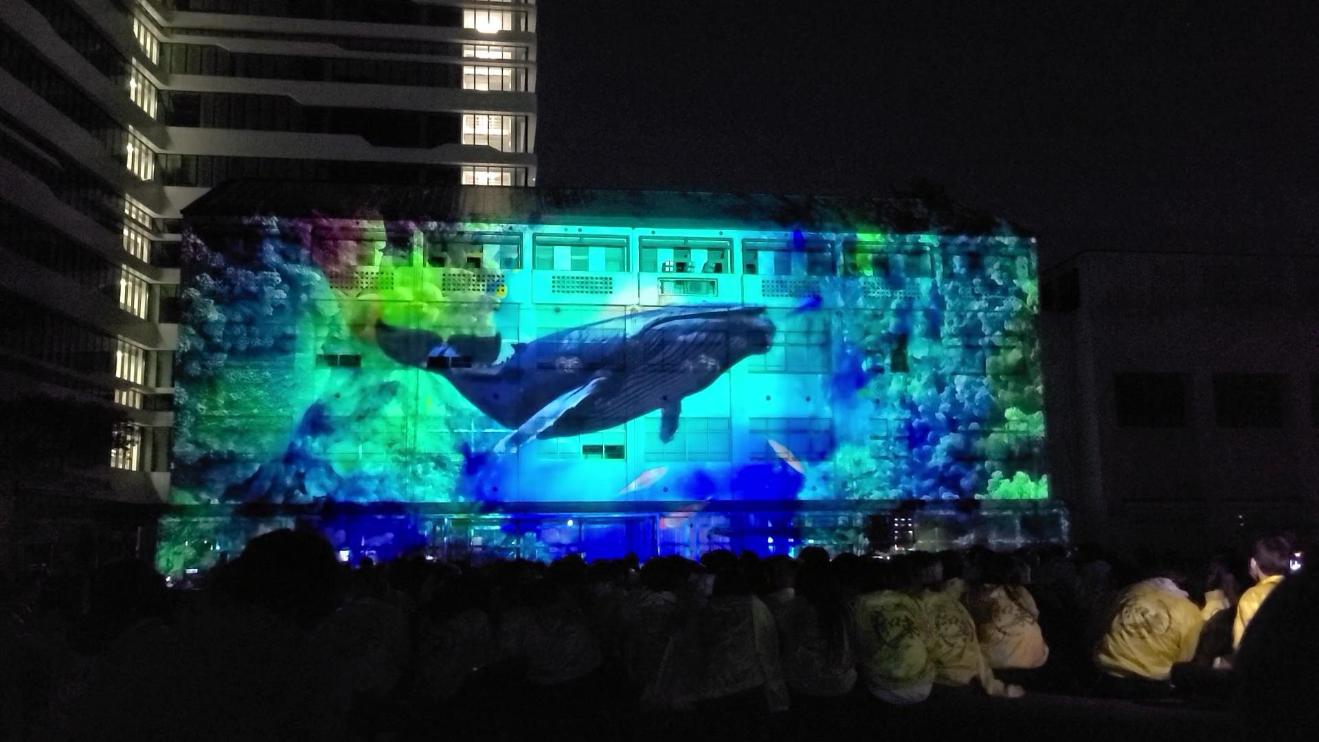 こうして実行委員会をはじめとする学生らが企画や準備を進め、10月19日・20日に記念すべき1回目の合同開催となる今年度の敬愛フェスティバルを開催。当日は、競泳の池江璃花子選手の母・池江美由紀氏による講演や人気の芸人が多数出演するお笑いライブ、ご当地ヒーロー「鳳神ヤツルギ」ショーのほか、日没後には大学校舎にプロジェクションマッピングを投影。笑顔と感動を誘った。