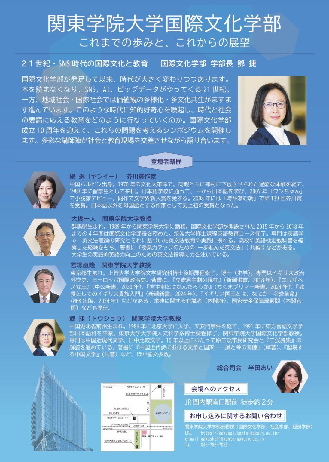 関東学院大学国際文化学部創立10周年記念シンポジウム「21世紀・SNS時代の国際文化と教育」開催のお知らせ