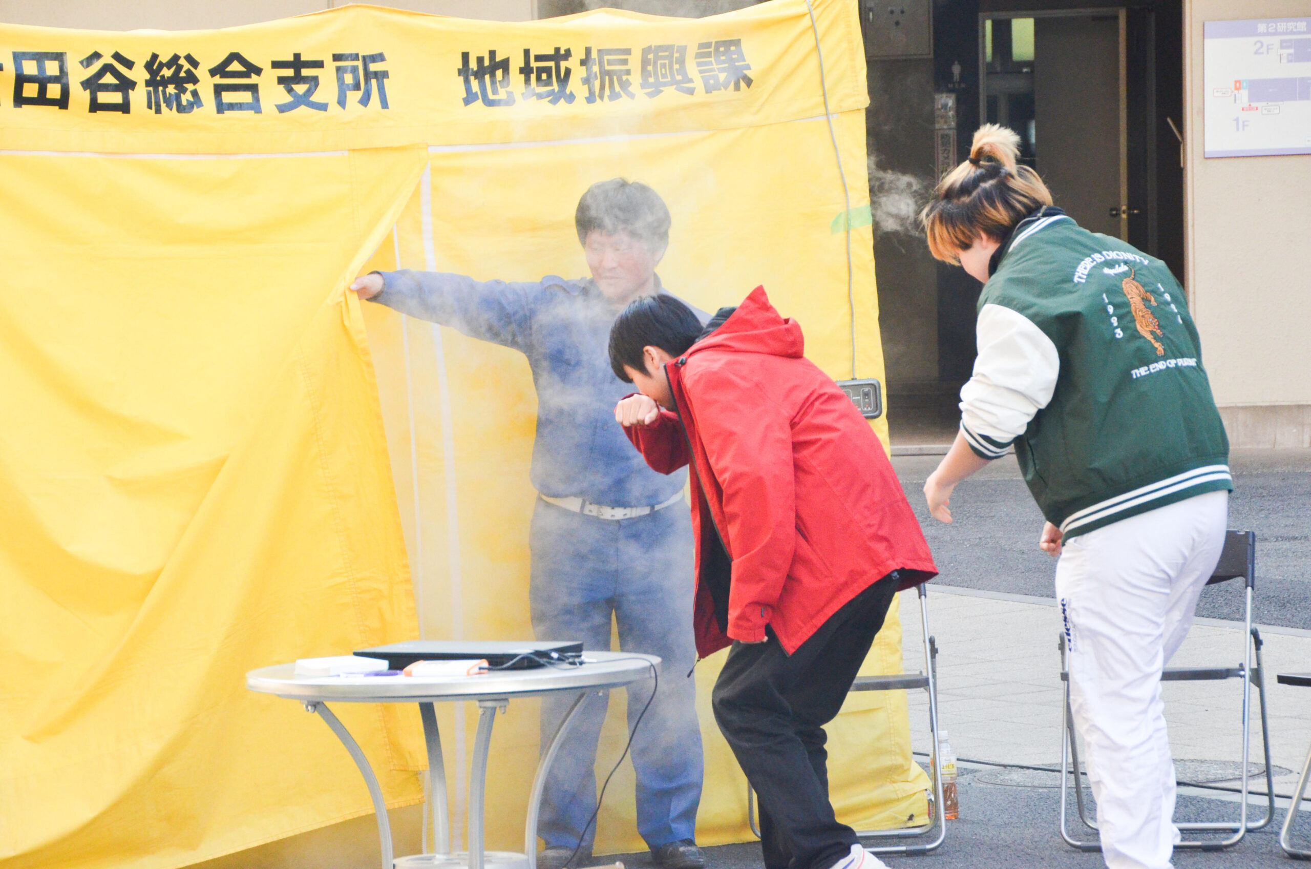世田谷区世田谷総合支所地域振興課の協力を得て、防災に関する体験を3日間提供する。煙中避難訓練、初期消火訓練、起震車震度7訓練の3種を体験できる。雨天中止。