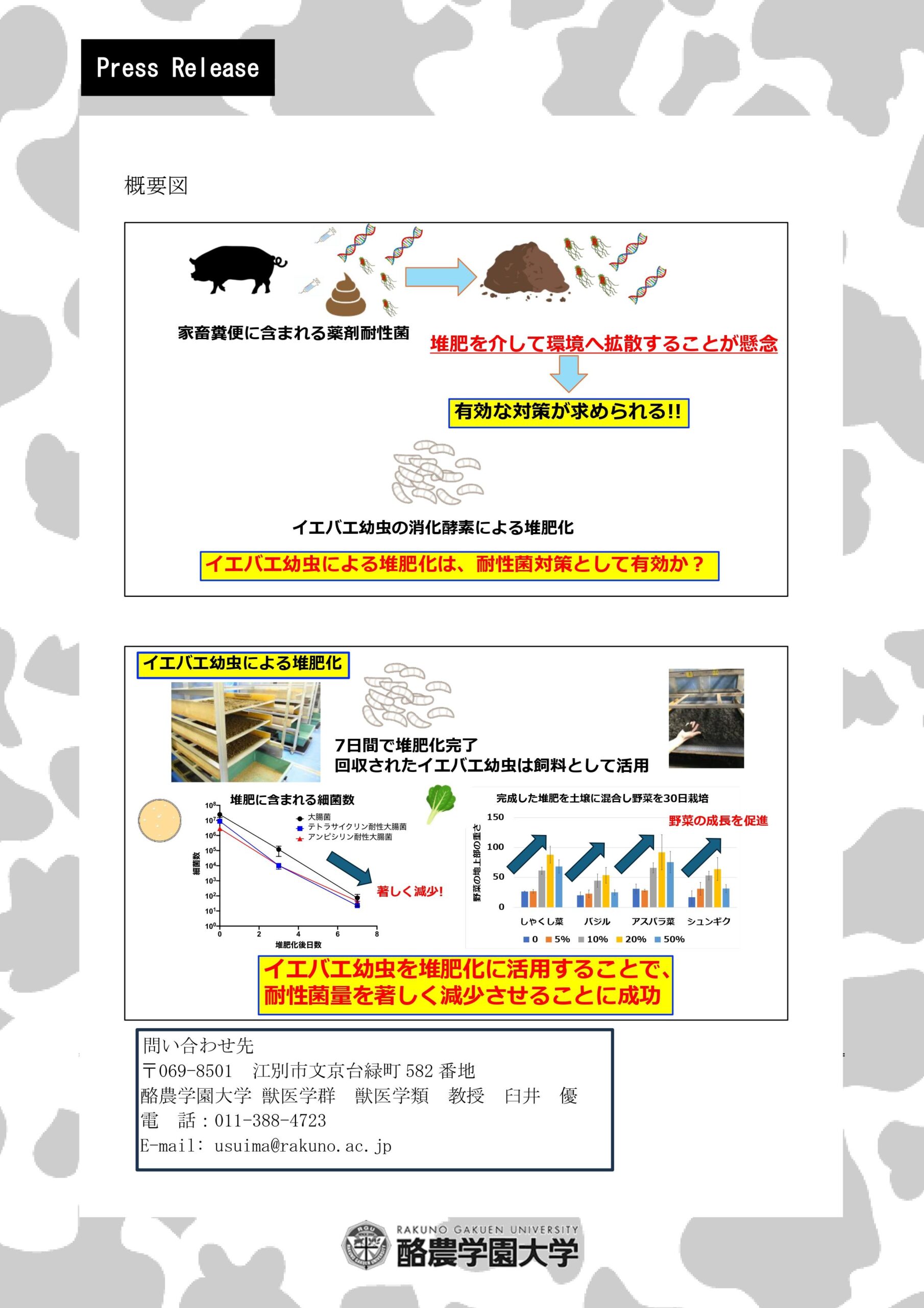 酪農学園大学 臼井教授、株式会社ムスカらの研究グループが、イエバエ幼虫を堆肥化に活用することで豚糞便に含まれる薬剤耐性菌対策を実現!