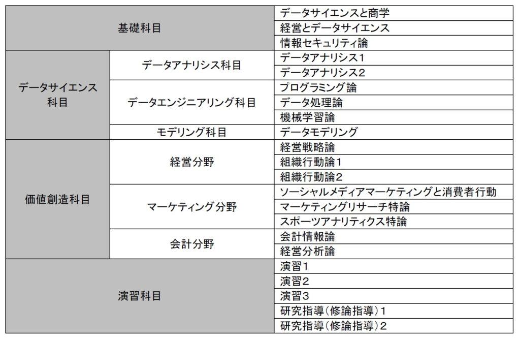 社会・企業・組織が持つ経営上の課題、社会的課題を解決するにあたり、データサイエンスから導き出される知見を活用し、実践的・実務的な環境に応じて、本質的に効果的な真の方策を見出し、データ社会の持つ倫理的な課題にも十分に配意し、社会等への具体的な働きかけを通じ、新たな価値創造を可能にするデータ社会におけるプロフェッショナル人材を養成する。