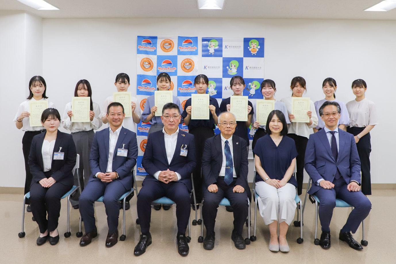 さらに9月11日に行われた同社の展示商談会では、学生らの考案した海鮮丼10種を展示。また表彰式が行われ、レシピを考案した学生に表彰状が手渡された。