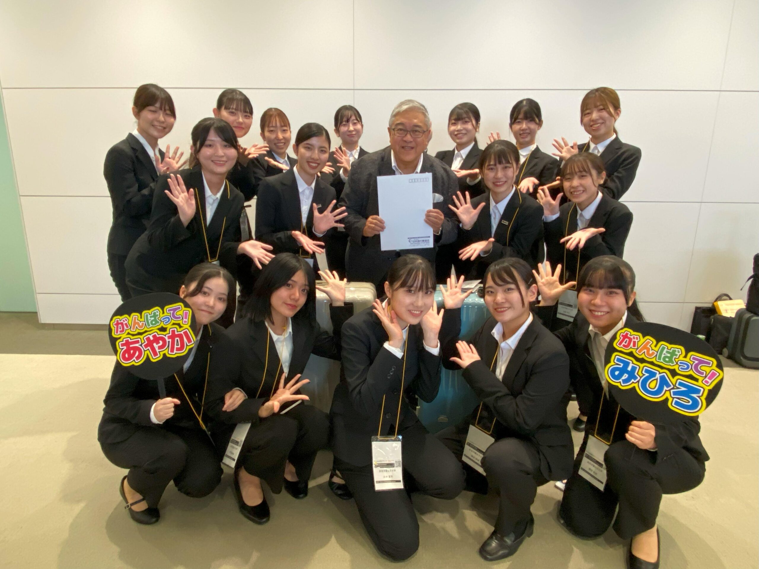 最終審査は6名の審査員を前にした7分間の公開プレゼンテーション。観光デザイン学科3年の千野心優さんと金子彩花さんが代表して登壇し、テンポよく息の合ったプレゼンを披露して、企画力、独創性、プレゼン力の3要素で審査が行われて全国2位に。授賞式で審査員から、「2人の素晴らしいプレゼン力に審査員一同感動しました」とのコメントが寄せられました。