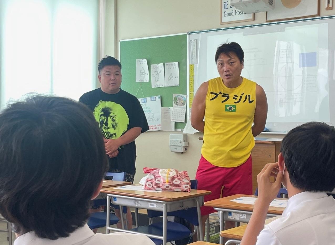 また、中学校の体育祭で行う新競技を、中学3年生12名が吉本興業のお笑い芸人と一緒に考案しました。5月にプロジェクトチームを立ち上げ、週1回のミーティングでは、吉本興業のspan!・チャイルドプリンス・ギャグ三兄弟・女と男・サバンナ八木さん・ミサイルマン西代さん・福井県住みます芸人の飯めしあがれこにおさんに参加していただくなど、多くの芸人さんからのアドバイスを参考に、競技をブラッシュアップしました。