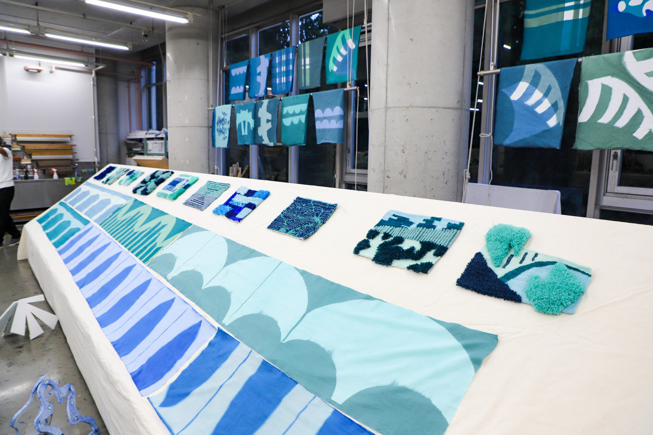 本展は、室内建築専攻領域(酒匂ゼミナール)の学生とテキスタイルデザイン専攻領域の学生の共同制作プロジェクトの展示です。