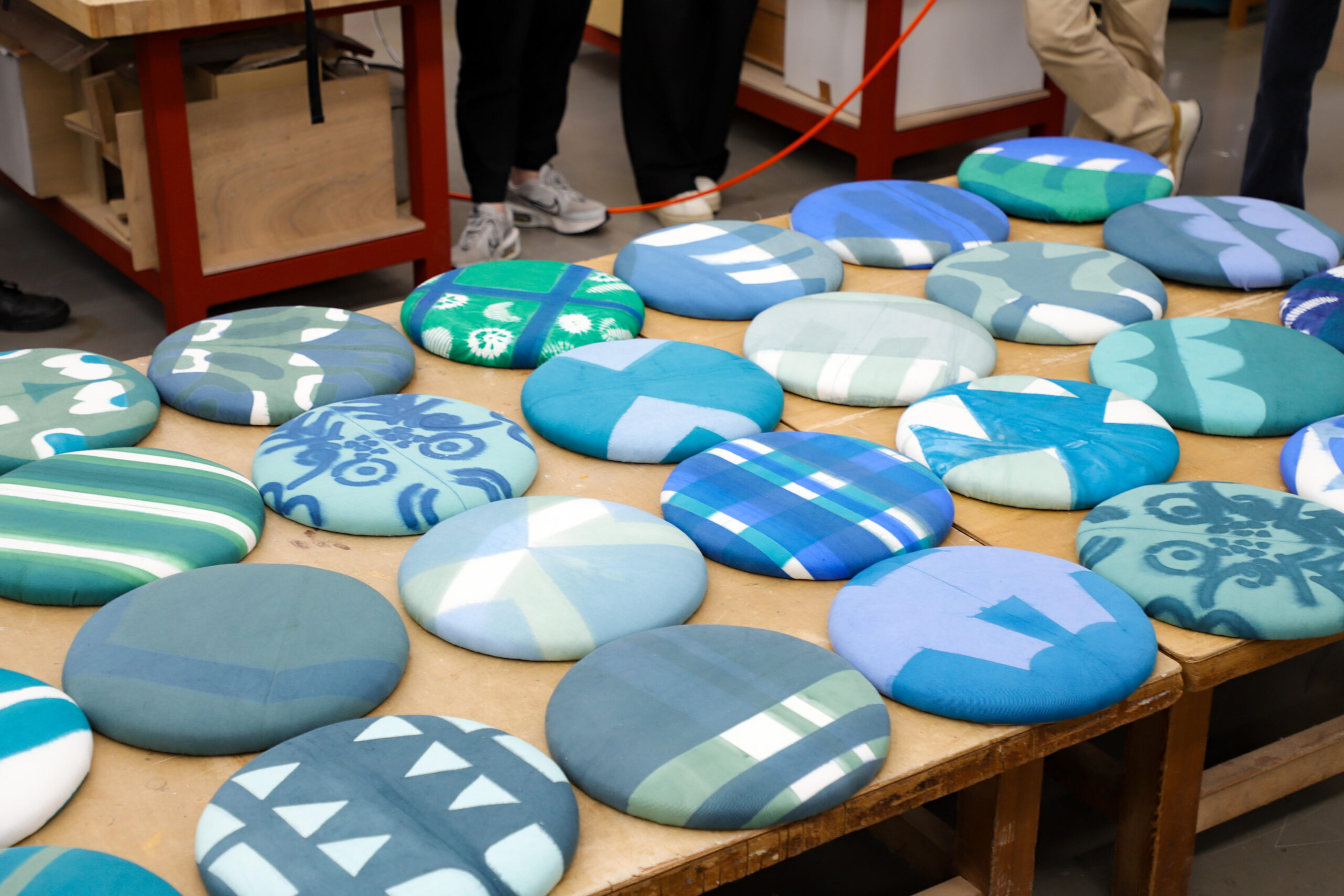 本展では、完成したテキスタイル作品をスツールの座面や空間デザインに展開し、一般公開します。人々の暮らしを彩る作品をぜひ間近でご覧ください。