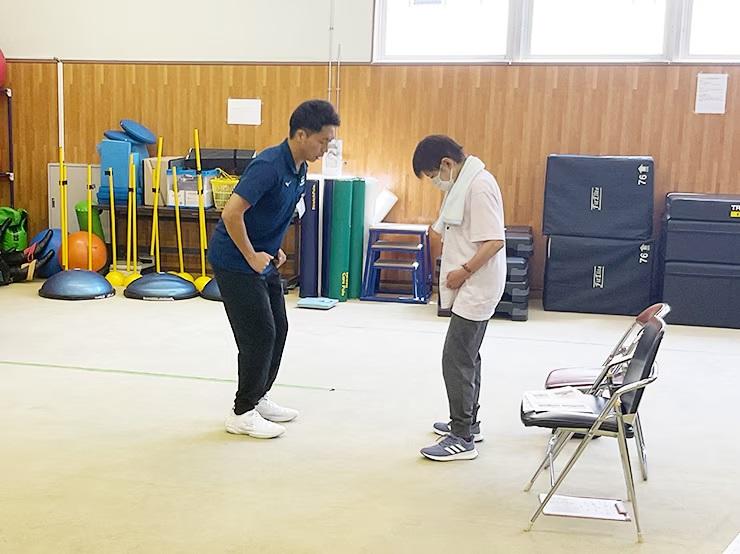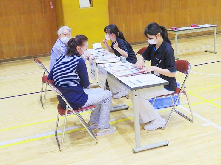 上体起こしや長座体前屈など10項目の体力測定を学生が行い、その結果を可視化。データをもとに教員より参加者へフィードバックし、最後に家でもできる簡単なトレーニングを指導した。