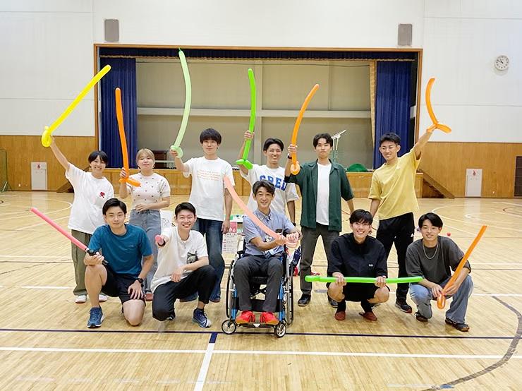 健康医療スポーツ学部医療スポーツ学科の馬場宏輝教授とパラスポーツサポート部がサポートし、フライングディスク、ソフトパラフェンシング、ブラインドサッカー、車いす体験、ボッチャの体験を行った。