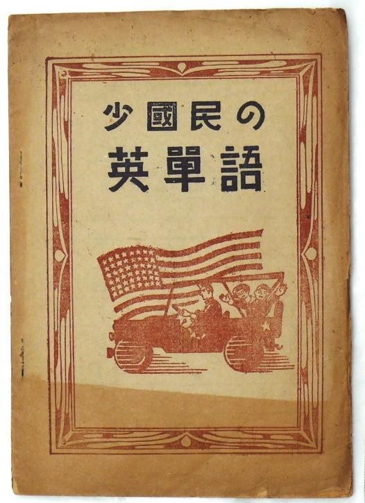 絵入り英単語帳。前書きに「今や英語に対する親しみは小さな児童の心を揺つてゐます。本書は国民学校の児童達に覚え易く、親しみ易く英語に慣れしめる様に工夫しました」とあります。奥付で「定価金弐円 ¥5」と価格を訂正しています。