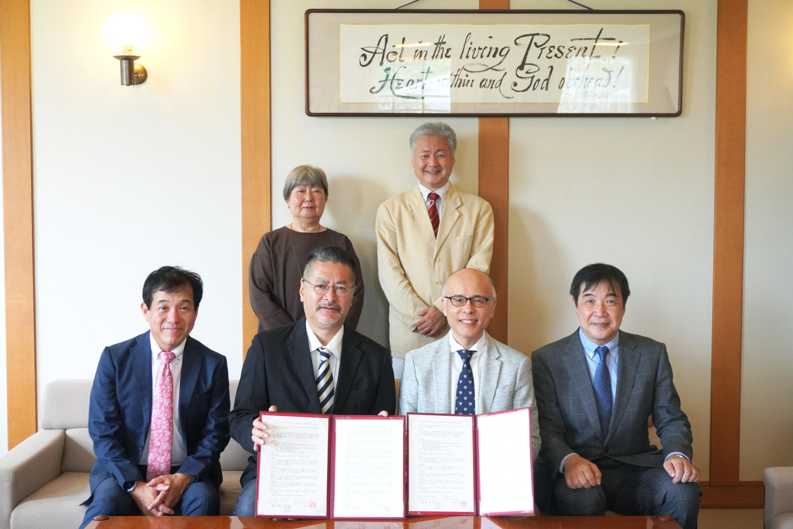 調印式には、大阪女学院中学校・高等学校より校長 山﨑哲嗣先生、副校長 関口淳先生が来学され、本学からは森本学長、山本副学長、小田学部長、栗田高大連携担当等が出席しました。協定書への署名、写真撮影の後、和やかな雰囲気の中で意見交換等を行いました。