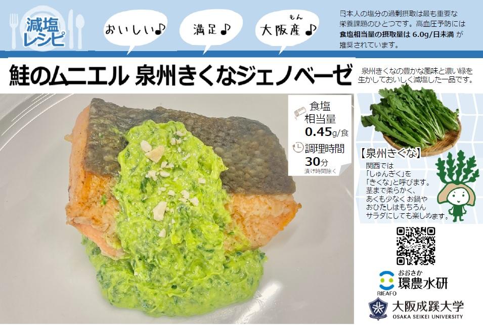 ▼新たに公開する「泉州きくなの減塩レシピ」(レシピ考案:大阪成蹊大学学生)
